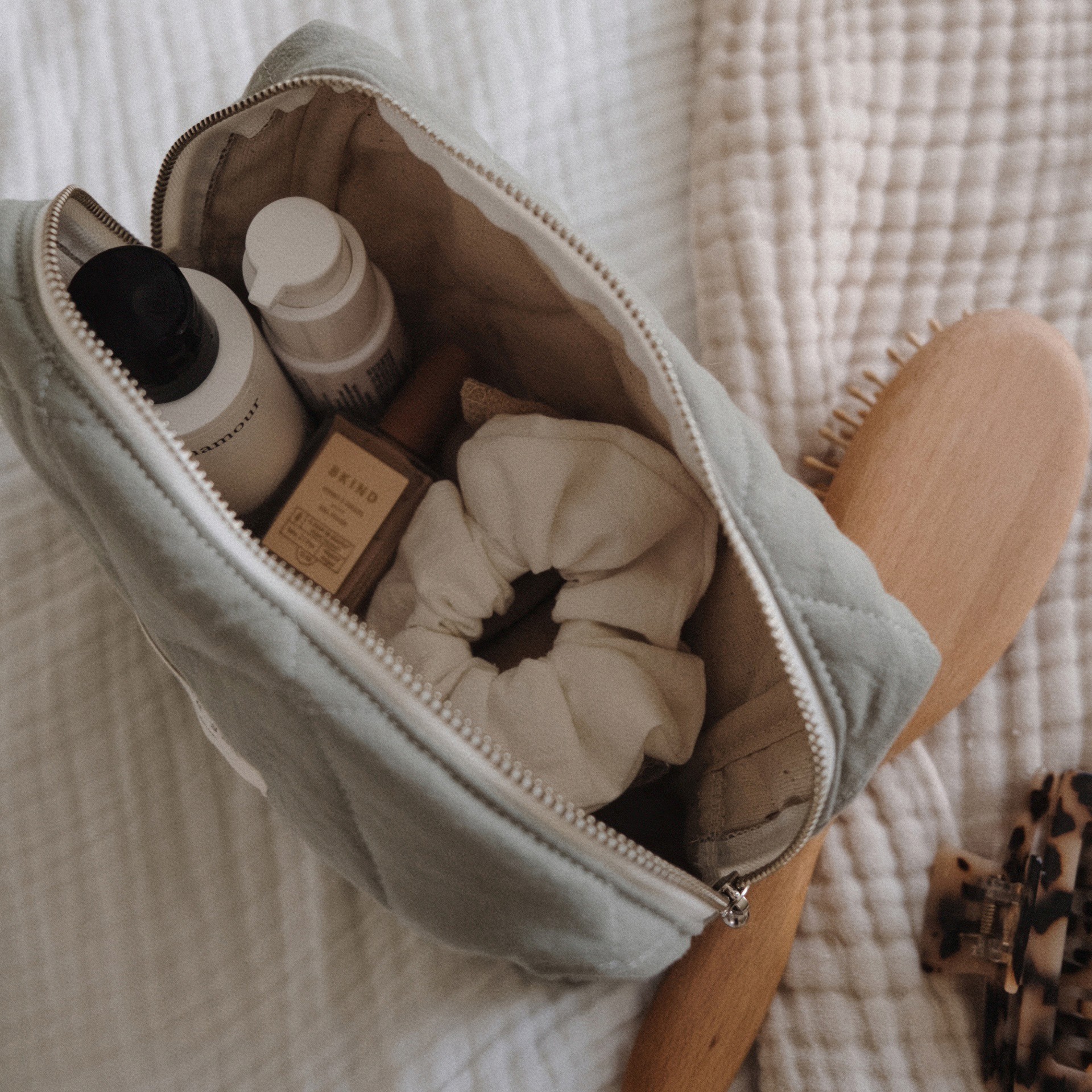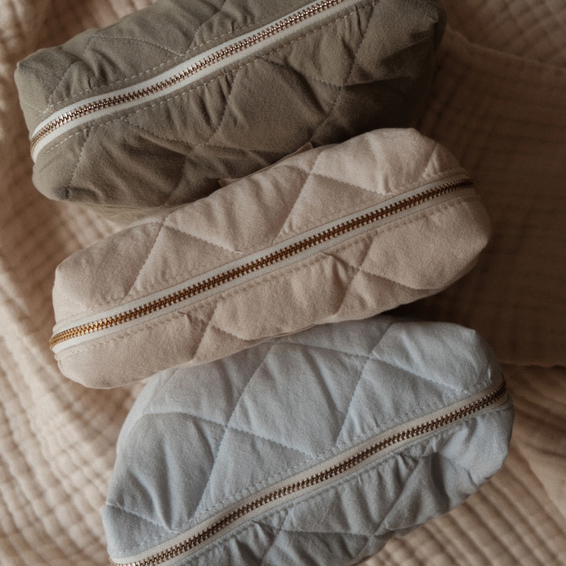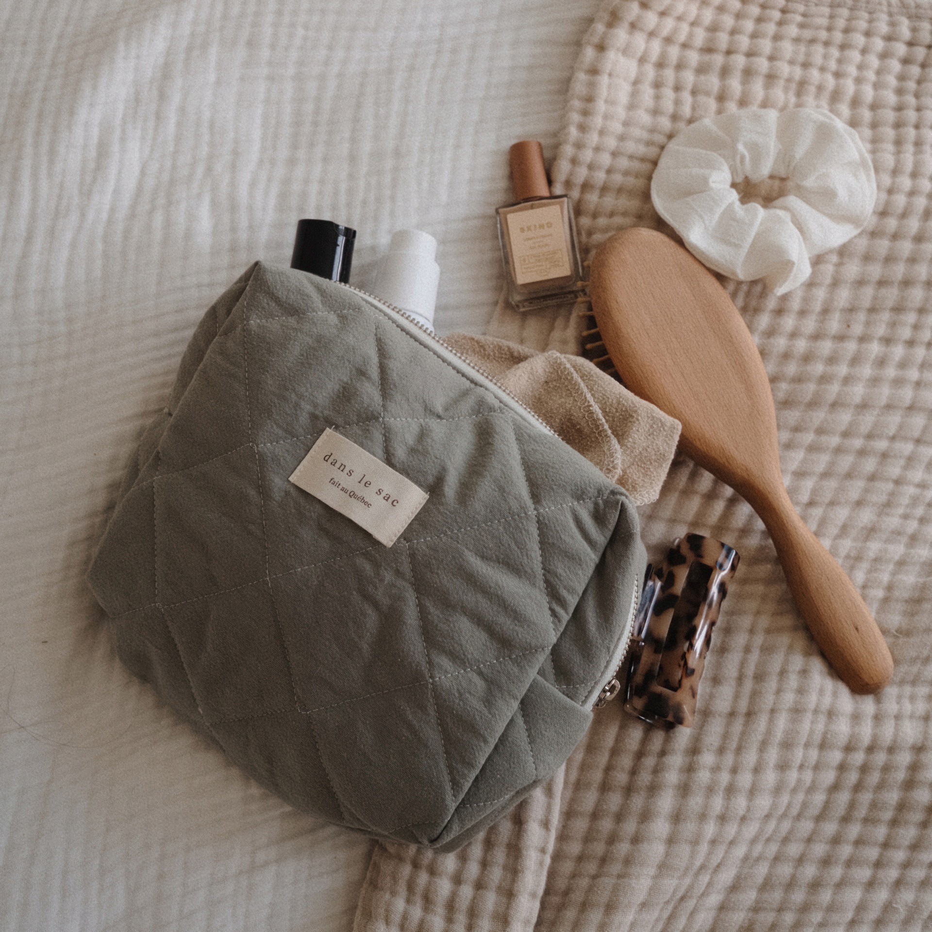 Fabriquée avec soin au Québec, cette pochette matelassée est idéale pour ranger vos médicaments, produits de beauté, articles d'hygiène, crayons ou essentiels pour bébé.