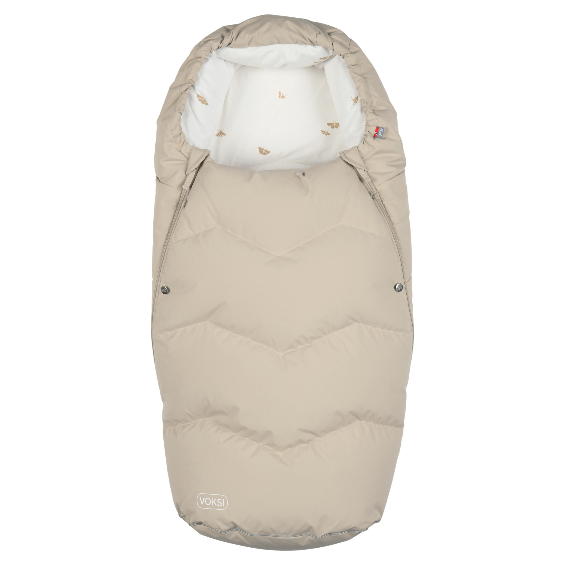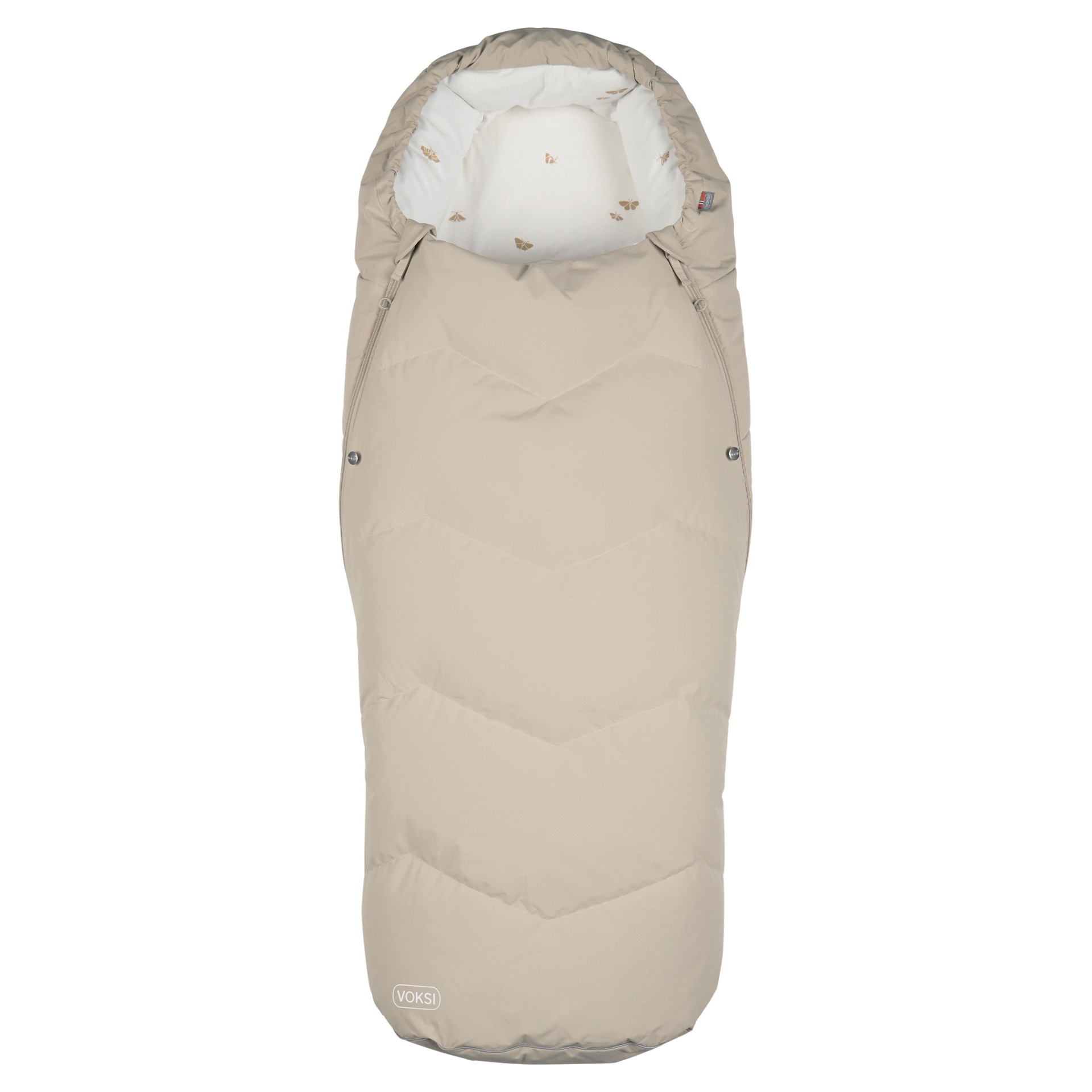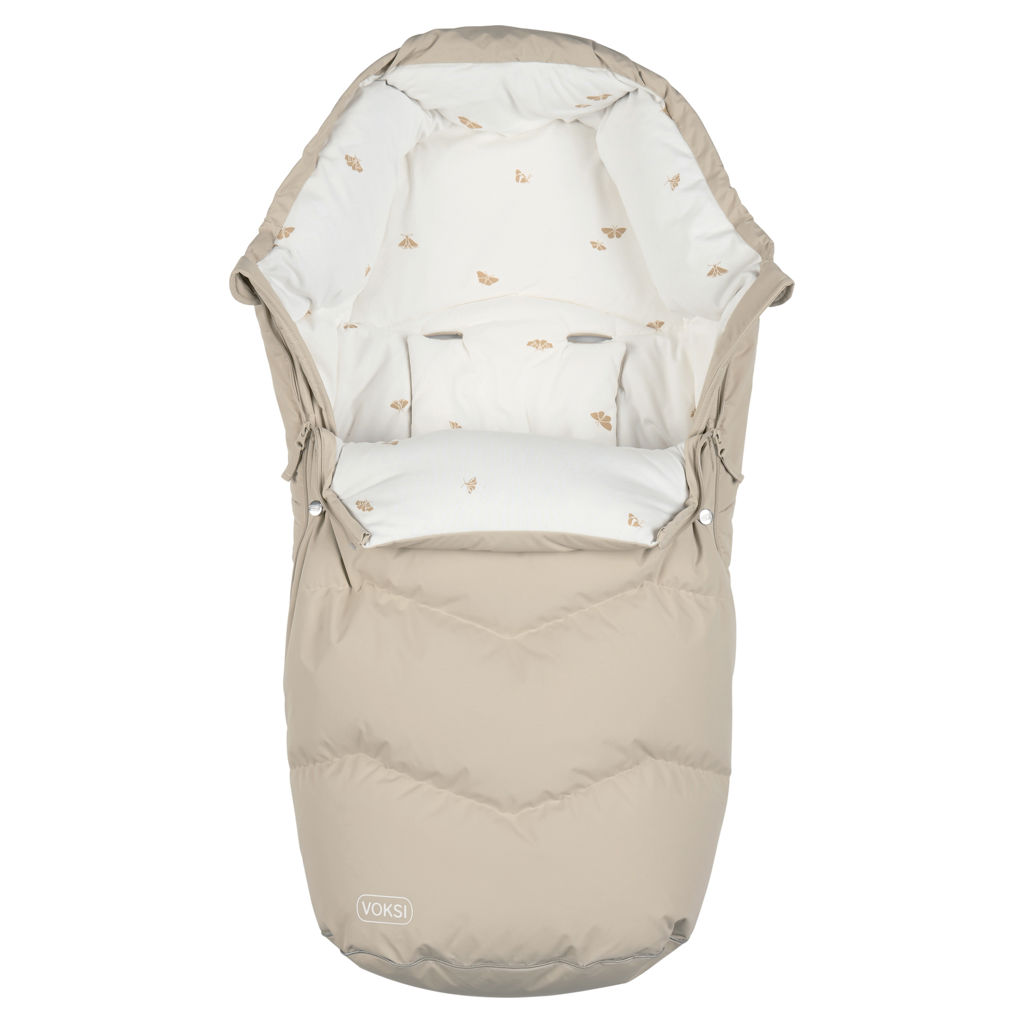 La gigoteuse pour poussette Voksi Urban s'ouvre avec une fermeture éclair avec une éolienne interne et deux curseurs, la fermeture éclair fait tout le tour, de sorte que la partie avant peut être ouverte des deux côtés et complètement dézippée.