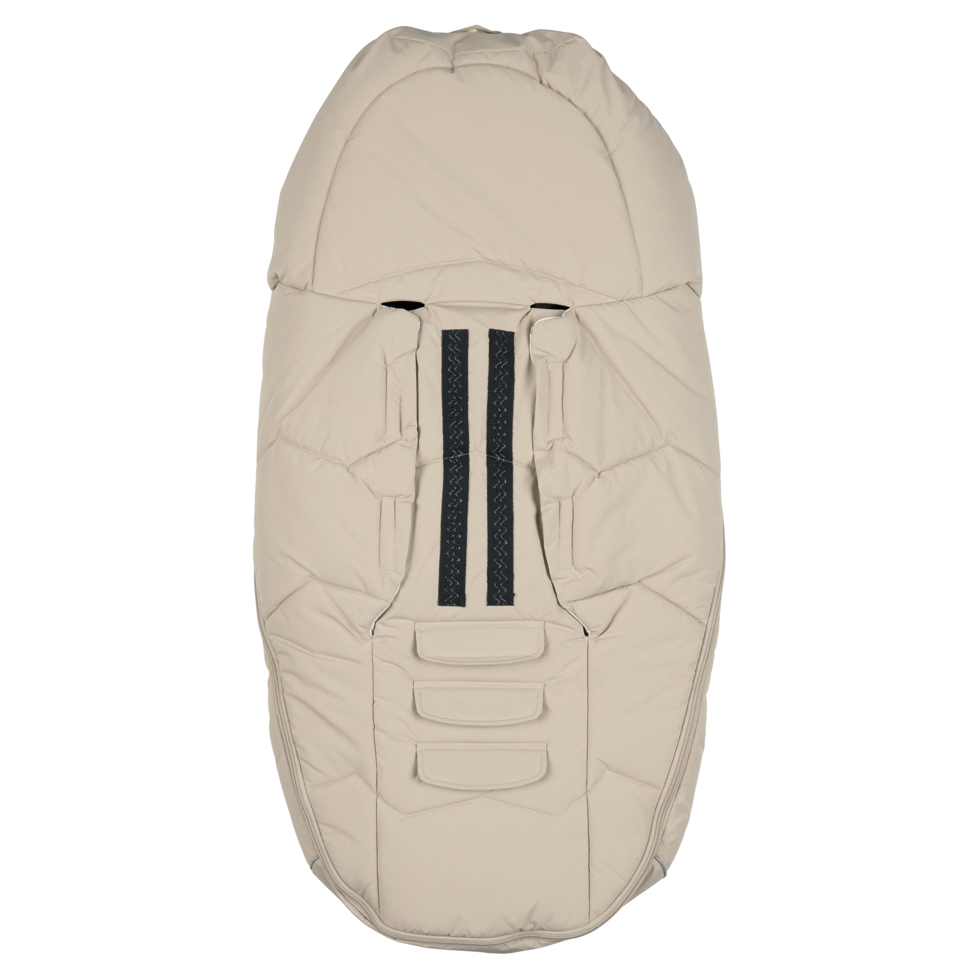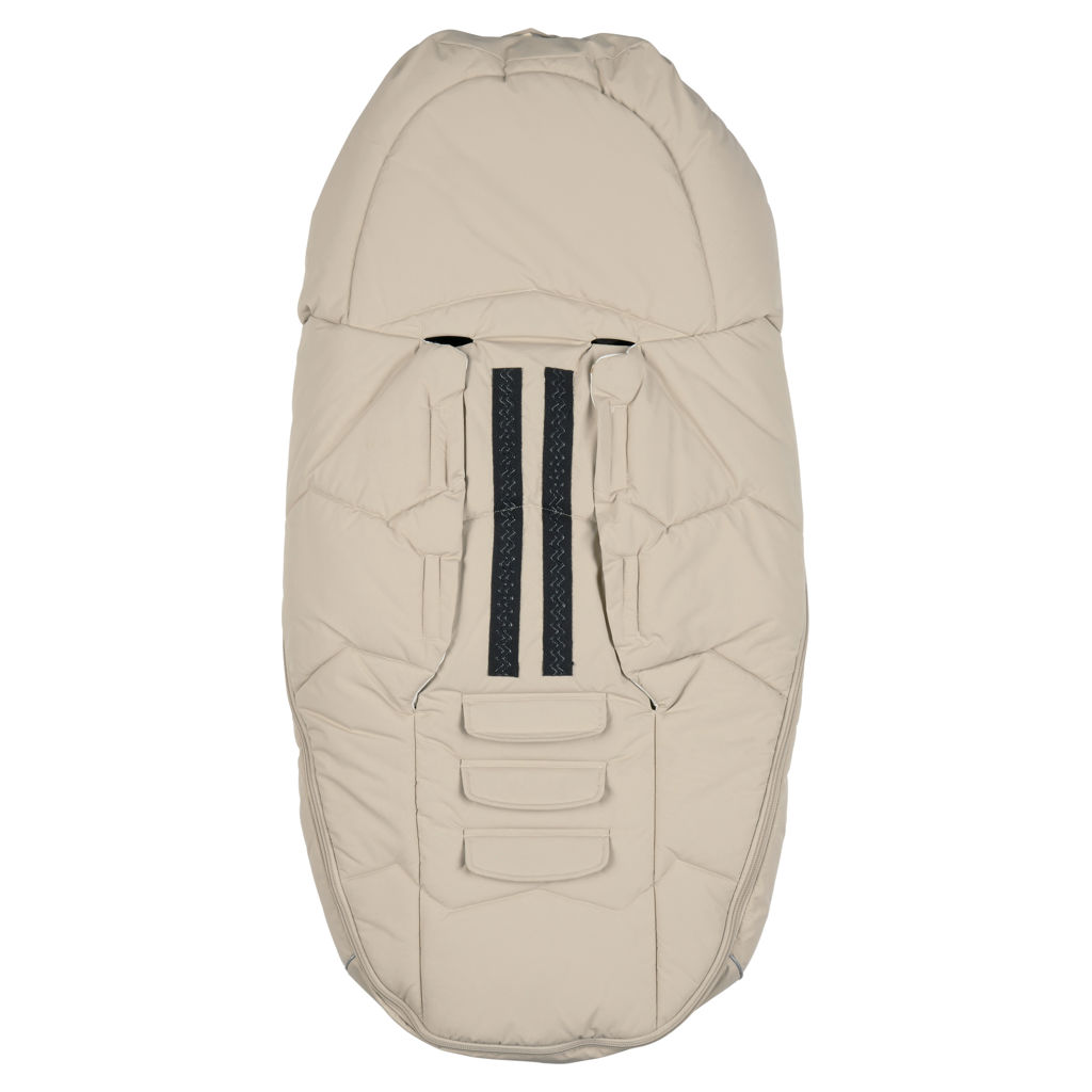 En haut, la gigoteuse pour poussette peut être resserré grâce à un cordon élastique caché dans une petite poche avec velcro. La partie avant entière peut être entièrement zippée et remplacée par une partie supérieure plus longue, afin que le sac puisse grandir avec l'enfant. Le long du bord inférieur du haut se trouve un passepoil réfléchissant pratique.