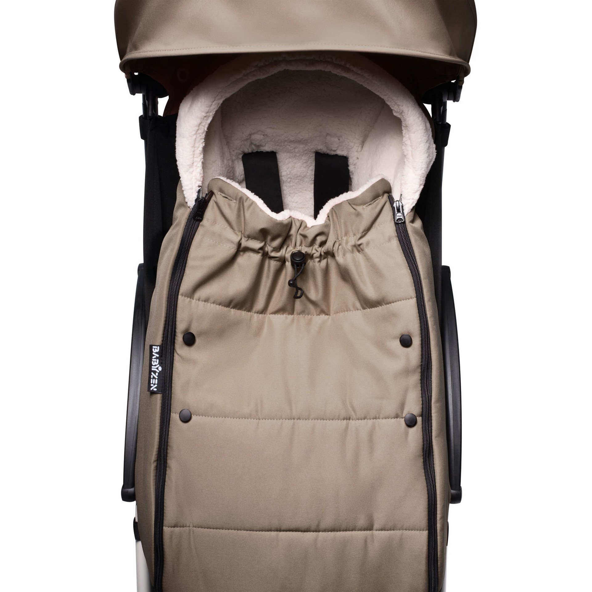 Pour s'adapter à toutes les saisons, la capuche est réversible et la partie supérieure de la chancelière intégralement détachable.