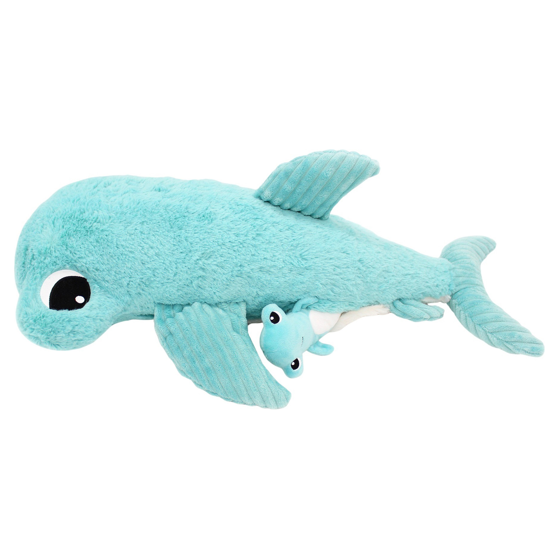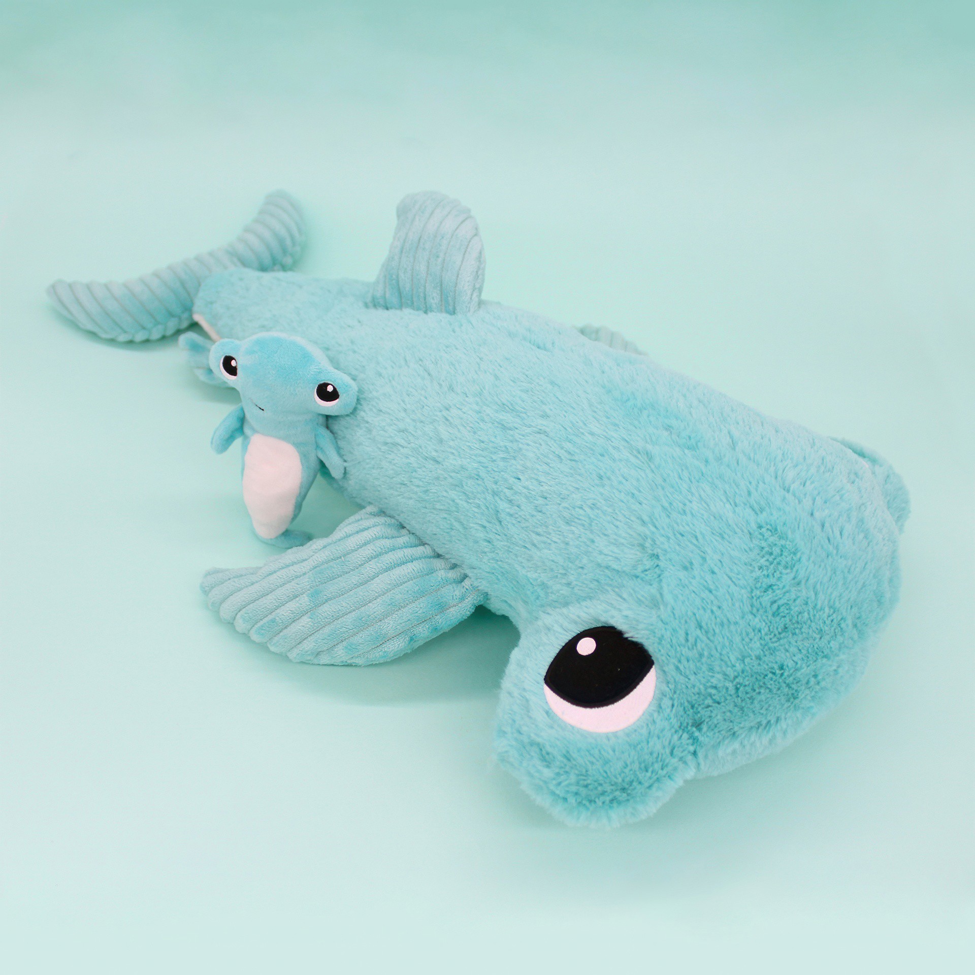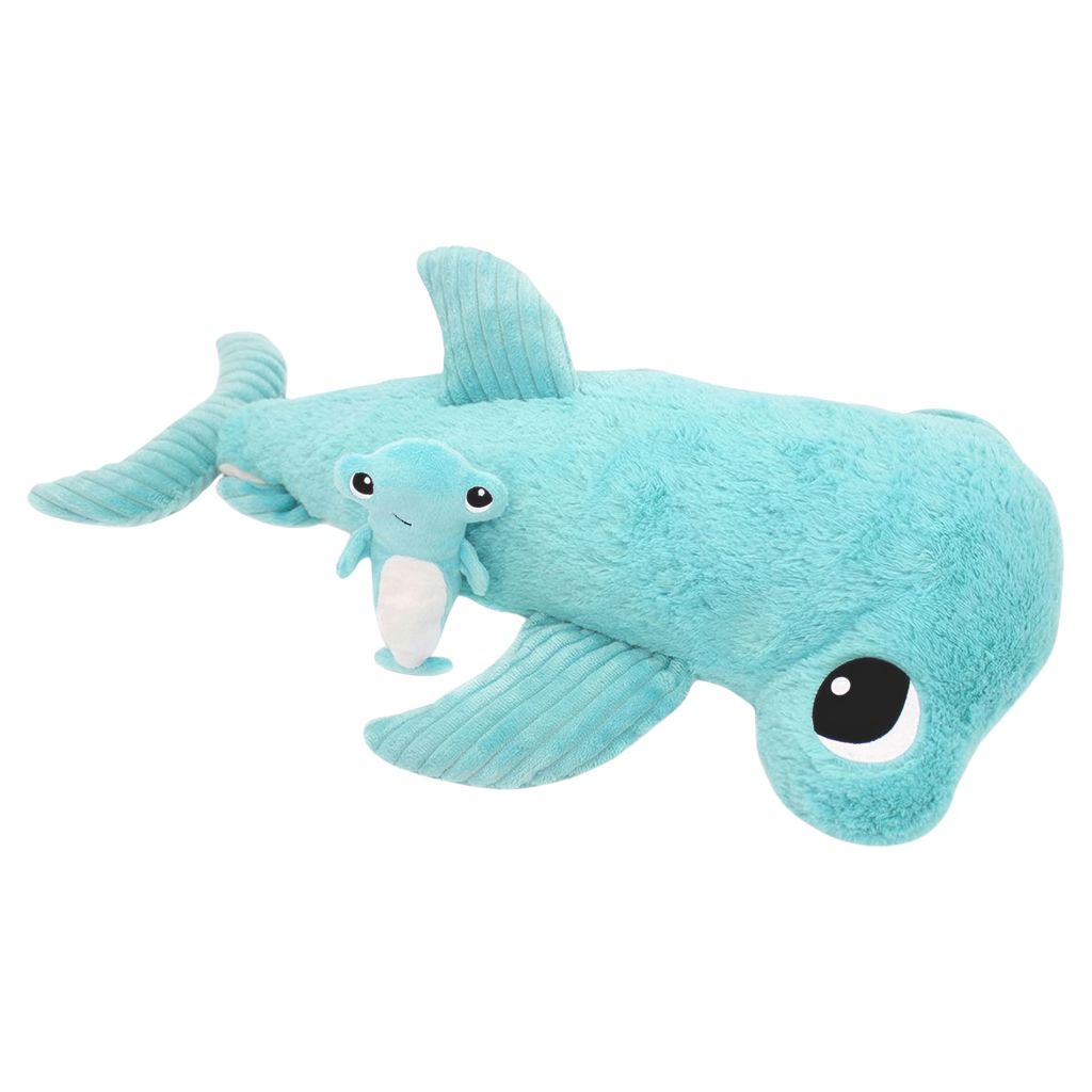 La peluche requin marteau maman et son bébé de 57 cm est en velours côtelé et est très douce.
