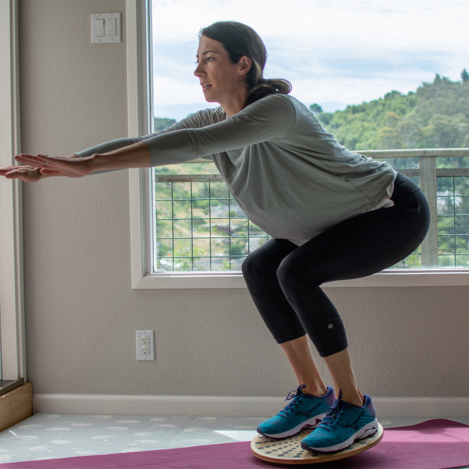 Les parents peuvent s'entraîner à garder l'équilibre en adoptant une bonne posture lorsqu'ils travaillent à un bureau debout, ou un frère ou une sur adolescent(e) peut essayer de faire des squats en équilibre pour développer la force du tronc et du bas du corps.