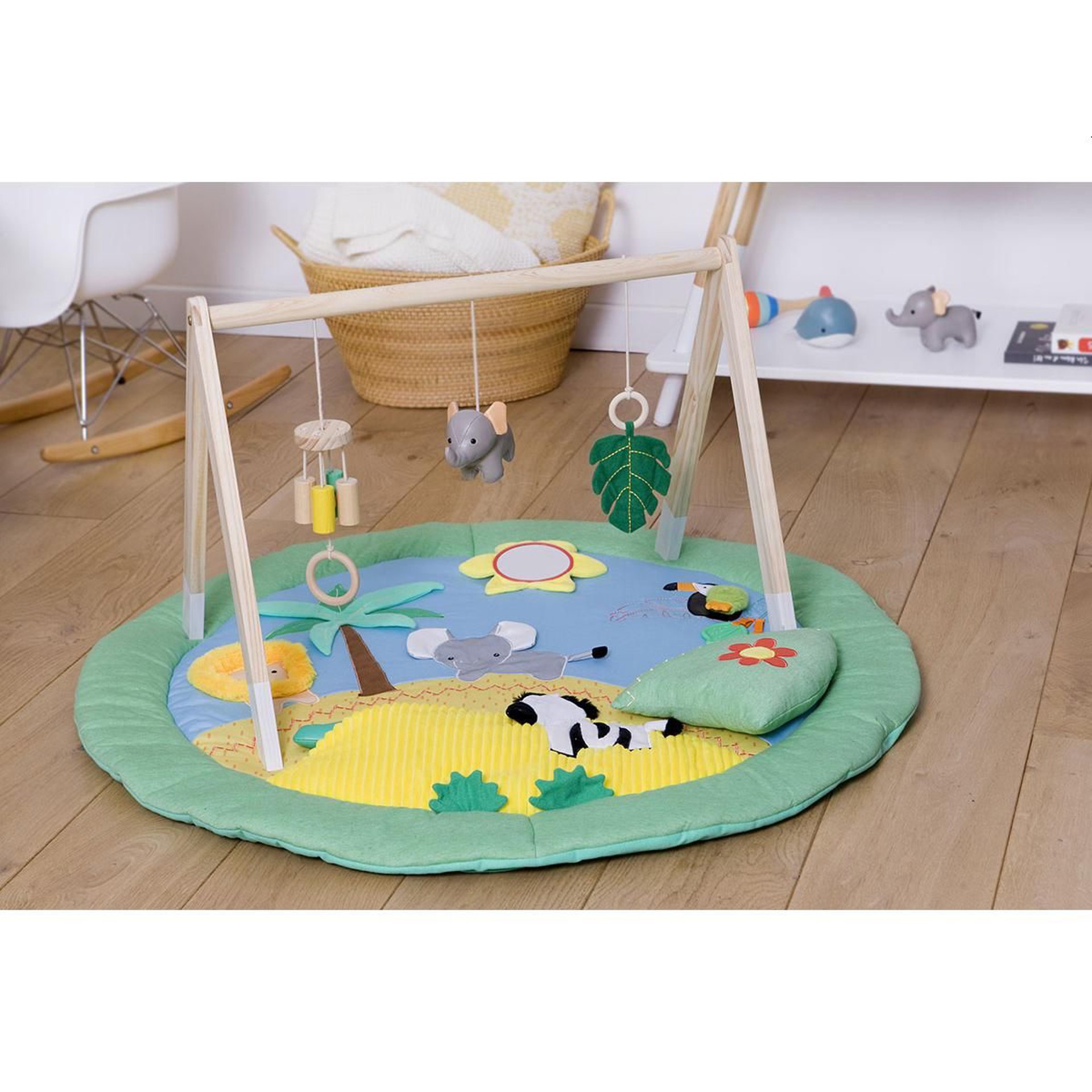 L’arche de jeu Little Big Friends éveille les sens de bébé grâce à ses 3 jouets suspendus. Bébé pourra s’entraîner à attraper et manipuler les éléments pour développer sa motricité fine tout en s’amusant. Avec ses petits éléments adorables sur le thème de la jungle, elle est parfaite pour décorer la chambre de bébé.