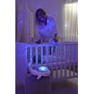 Tranquil Whale transformera la chambre de l’enfant en une oasis tranquille. Le dos de la baleine projette une lumière qui créée un effet sous-marin apaisant – avec des vagues - tandis que la machine de son offre deux choix apaisants: une mélodie douce ou le bruit des vagues.