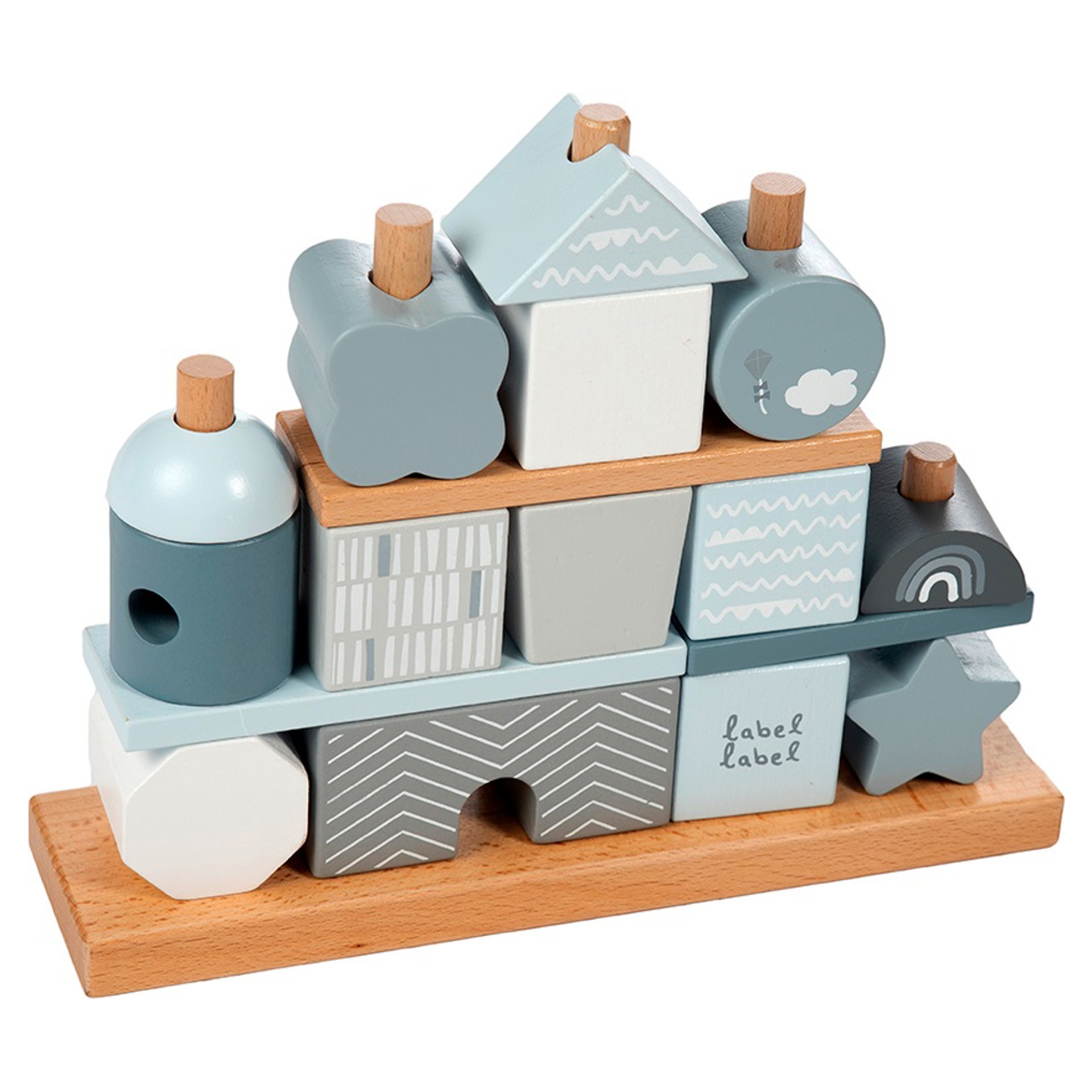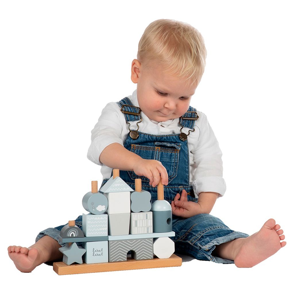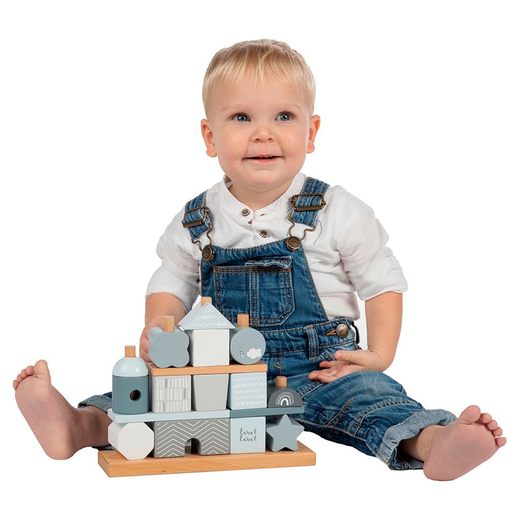 Ces cubes empilables de Label Label sont faits de bois de hêtre certifié FSC de qualité et ont été décorés avec de belles nuances roses/blanches/grises à l´aide de peinture à base d´eau non nocive pour les enfants.