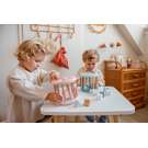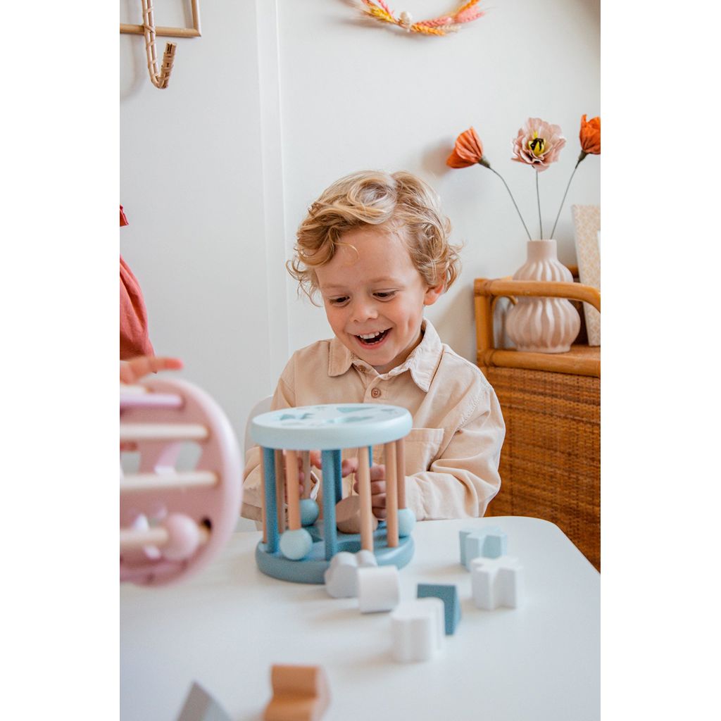 Comprend:1 roue de tri en bois et 6 formes géométriques.