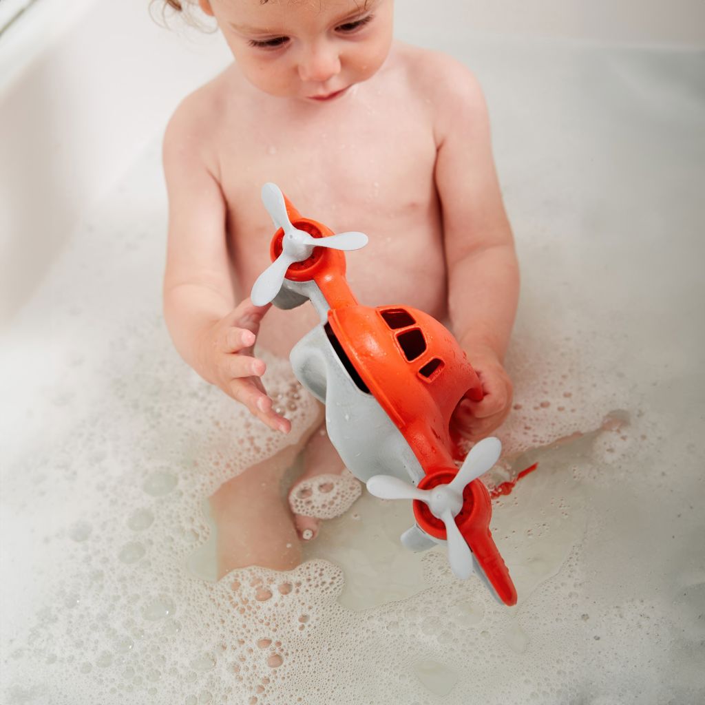 C'est l'heure de sauver la planète! L'avion de pompier Green ToysTM porte le plaisir de l'écopage et de l'envol à un tout autre niveau, et constitu le complément parfait à toute flotte de baignoire.