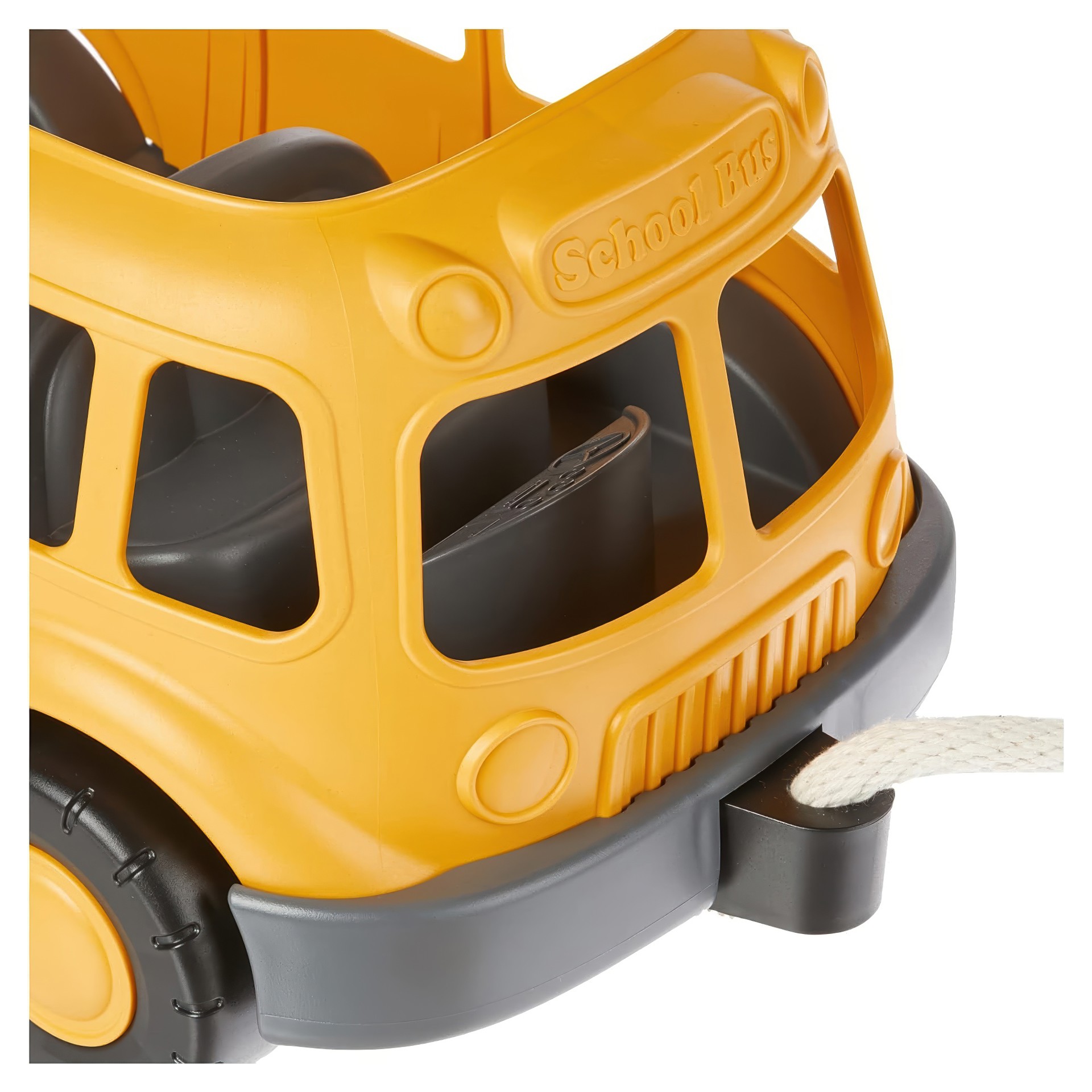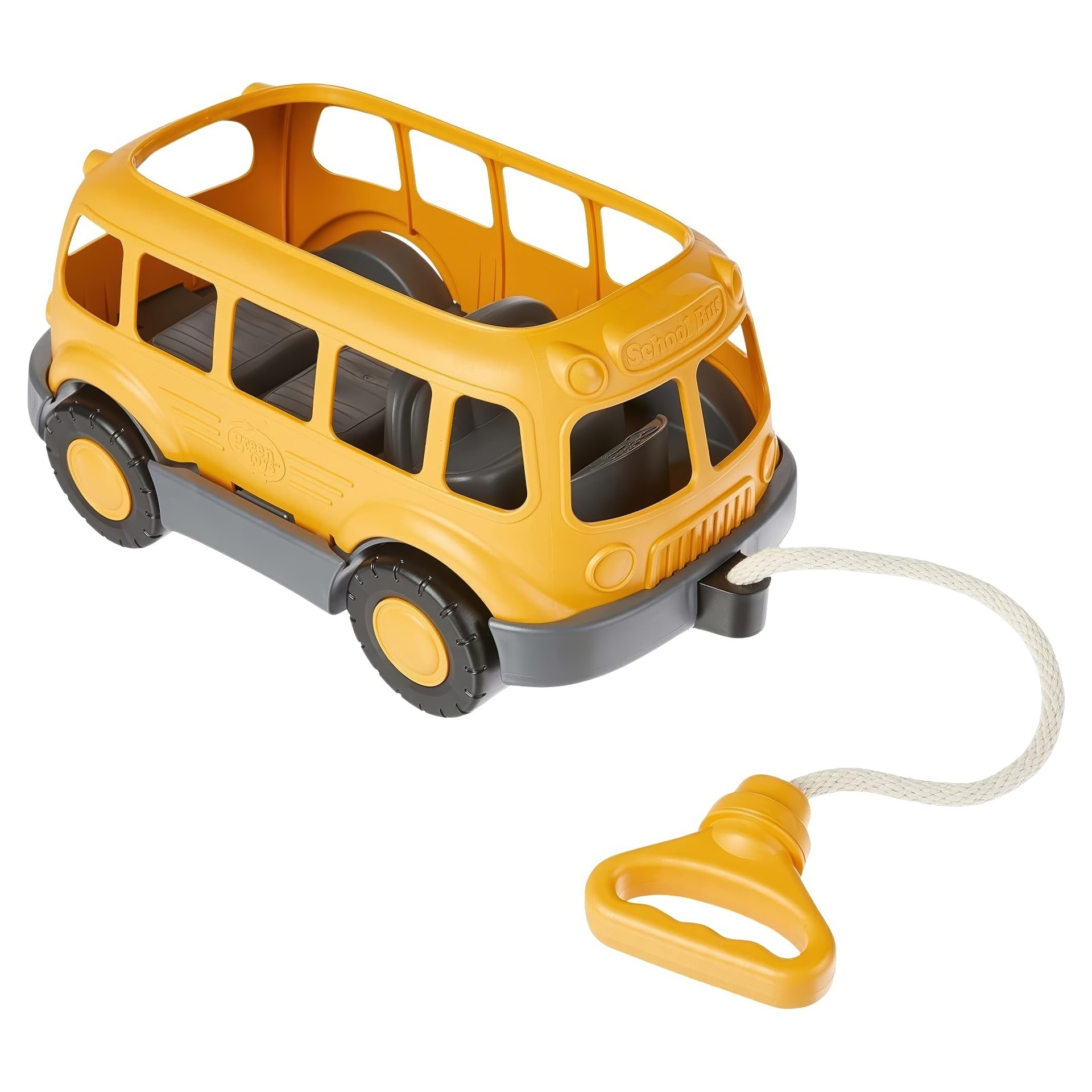 Le Chariot Autobus Scolaire de Green ToysTM est robuste, durable et dispose d'une poignée et d'une corde faite de coton à 100% qui se range facilement à l'intérieur pour un stockage pratique et sûr.