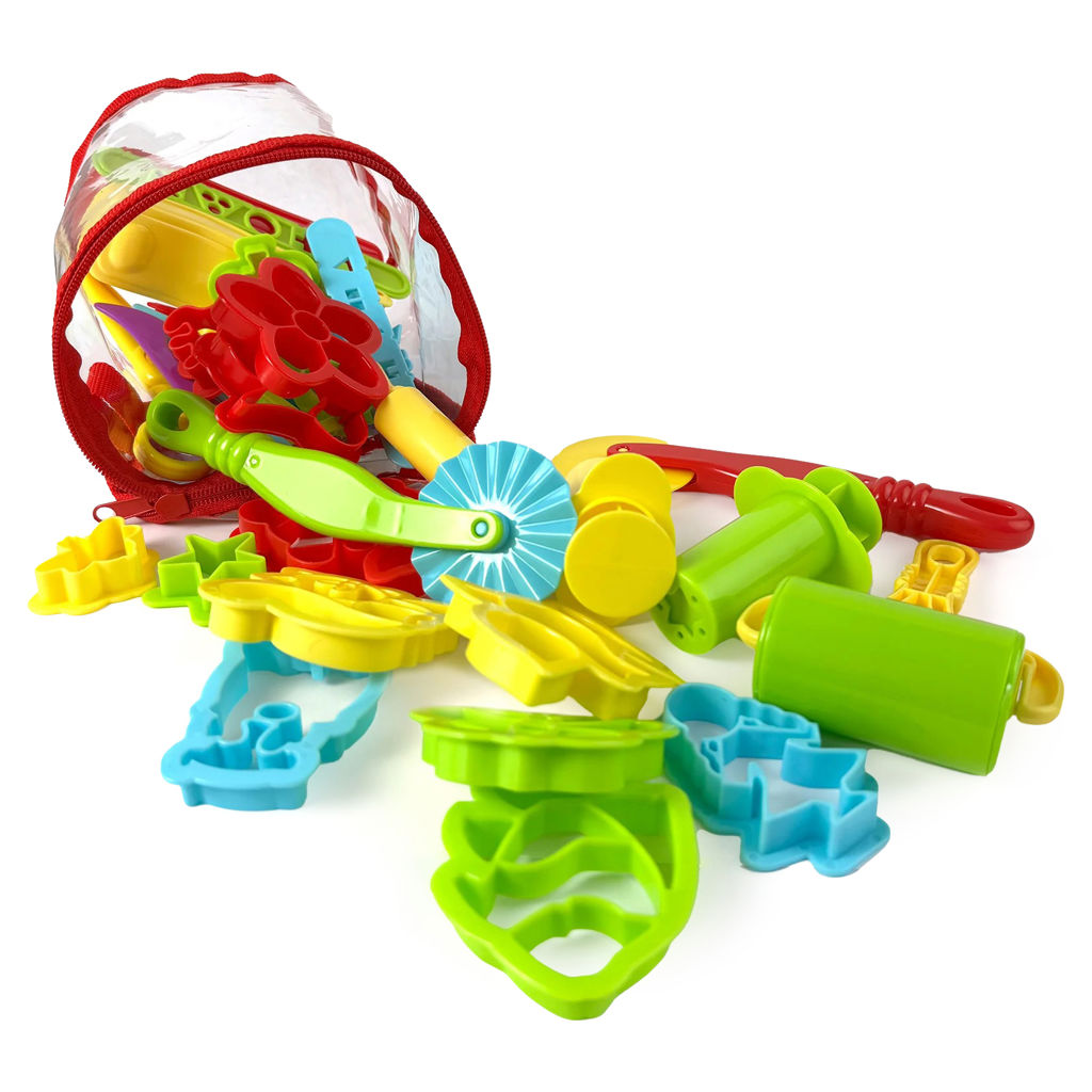 Ce seau comprend 35 outils et moules colorés pour découper, rouler, sculpter et donner vie à la pâte à modeler.