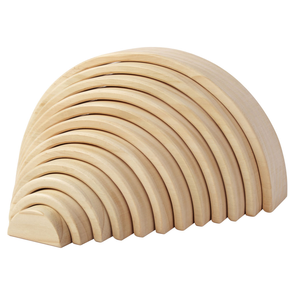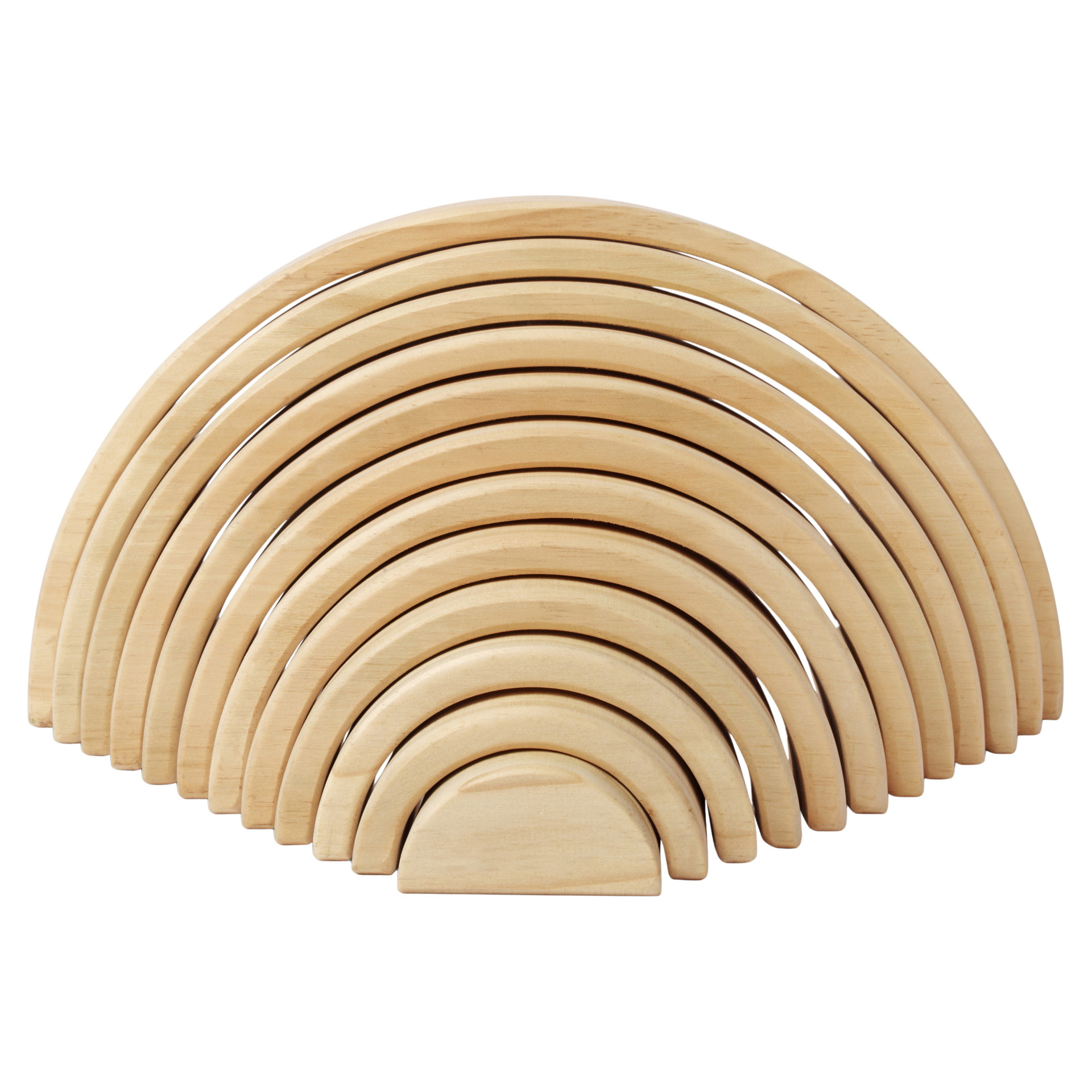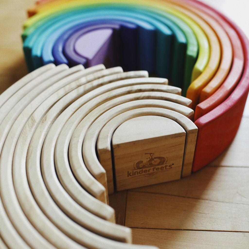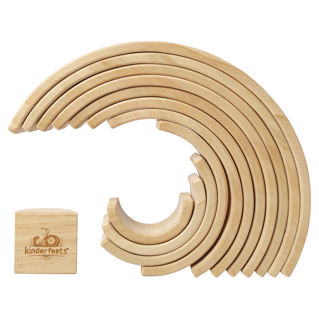 Les grandes arches naturelles en bois Kinderfeets ! Les 12 arches empilables encouragent les enfants à trier, à assembler et à développer leurs capacités cognitives tout en jouant librement et de manière imaginative.