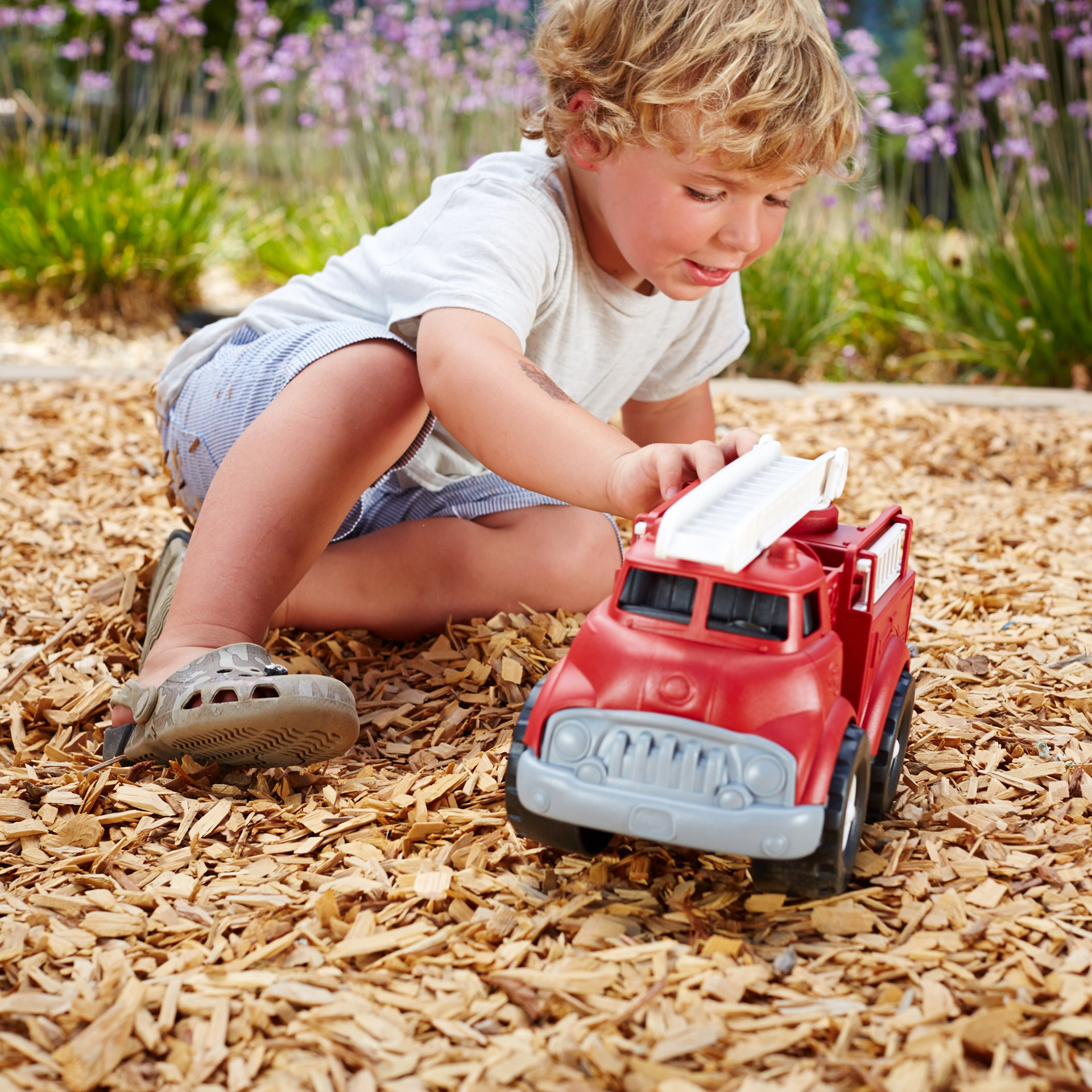 Éteindre des feux. Sauver des chatons de la cime des arbres. Protéger l'environnement. Ce n'est qu'une journée typique dans la vie du camion de pompier Green ToysTM, le véhicule d'urgence le plus écologique au monde.