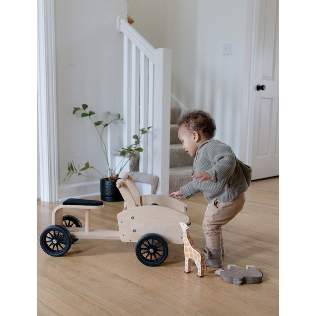 Fabriqué à partir de bois de bouleau de source durable, de peintures à base d'eau et de finitions non toxiques, le vélo cargo offre aux tout-petits actifs âgés de 12 mois et plus la chance d'explorer la vie sur roues avec leurs jouets et animaux en peluche préférés pendant le trajet.