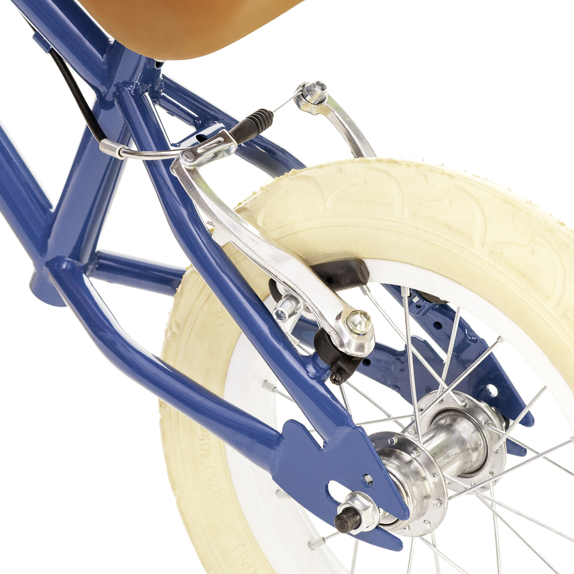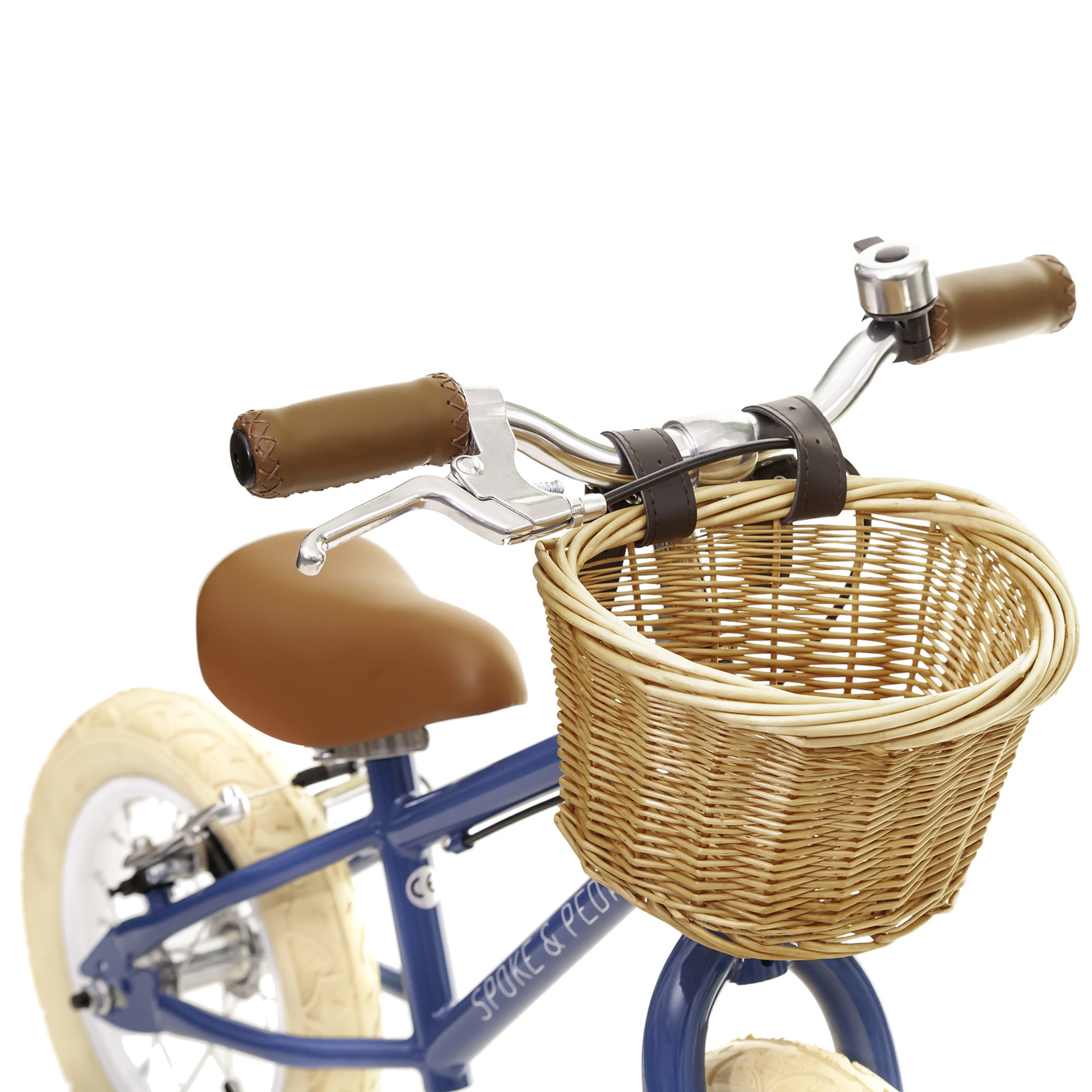 Caractéristiques : Cadre en acier de style rétro avec roues de 12 po, frein arrière en V avec levier à courte portée et fixation de tige de siège à dégagement rapide, poignées et siège en cuir synthétique, cloche et panier en rotin.