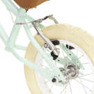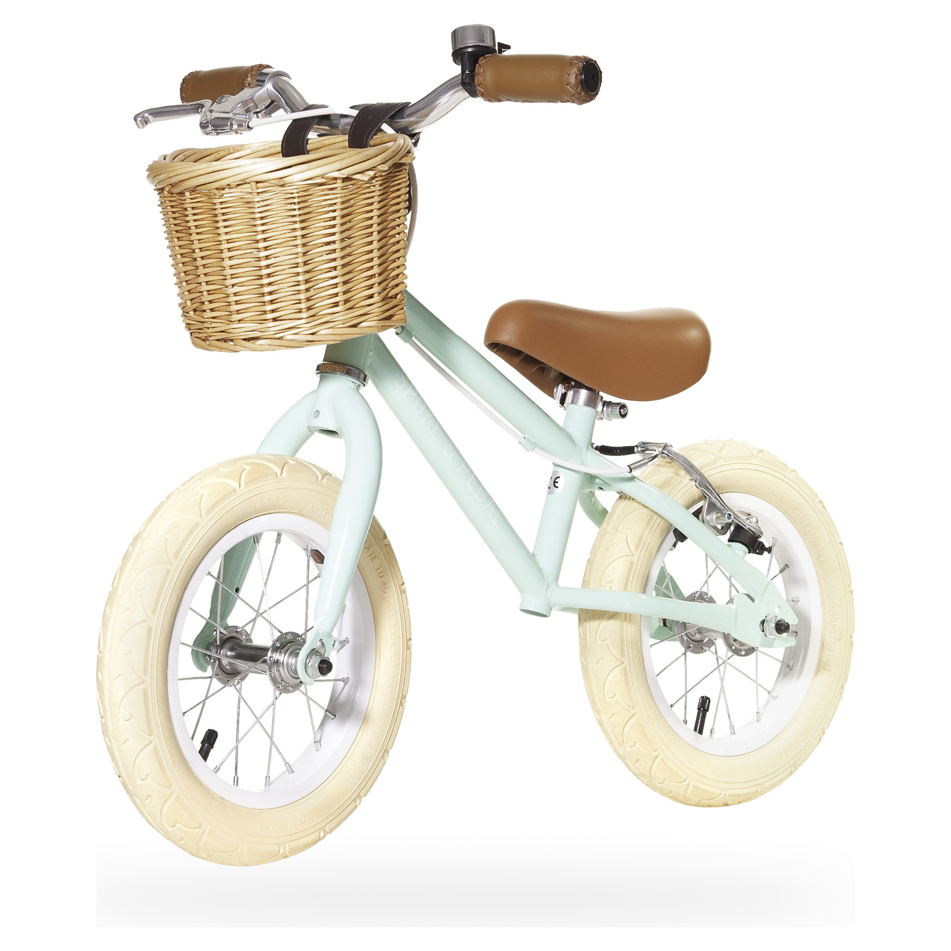 Caractéristiques : Cadre en acier de style rétro avec roues de 12 po, frein arrière en V avec levier à courte portée et fixation de tige de siège à dégagement rapide, poignées et siège en cuir synthétique, cloche et panier en rotin.