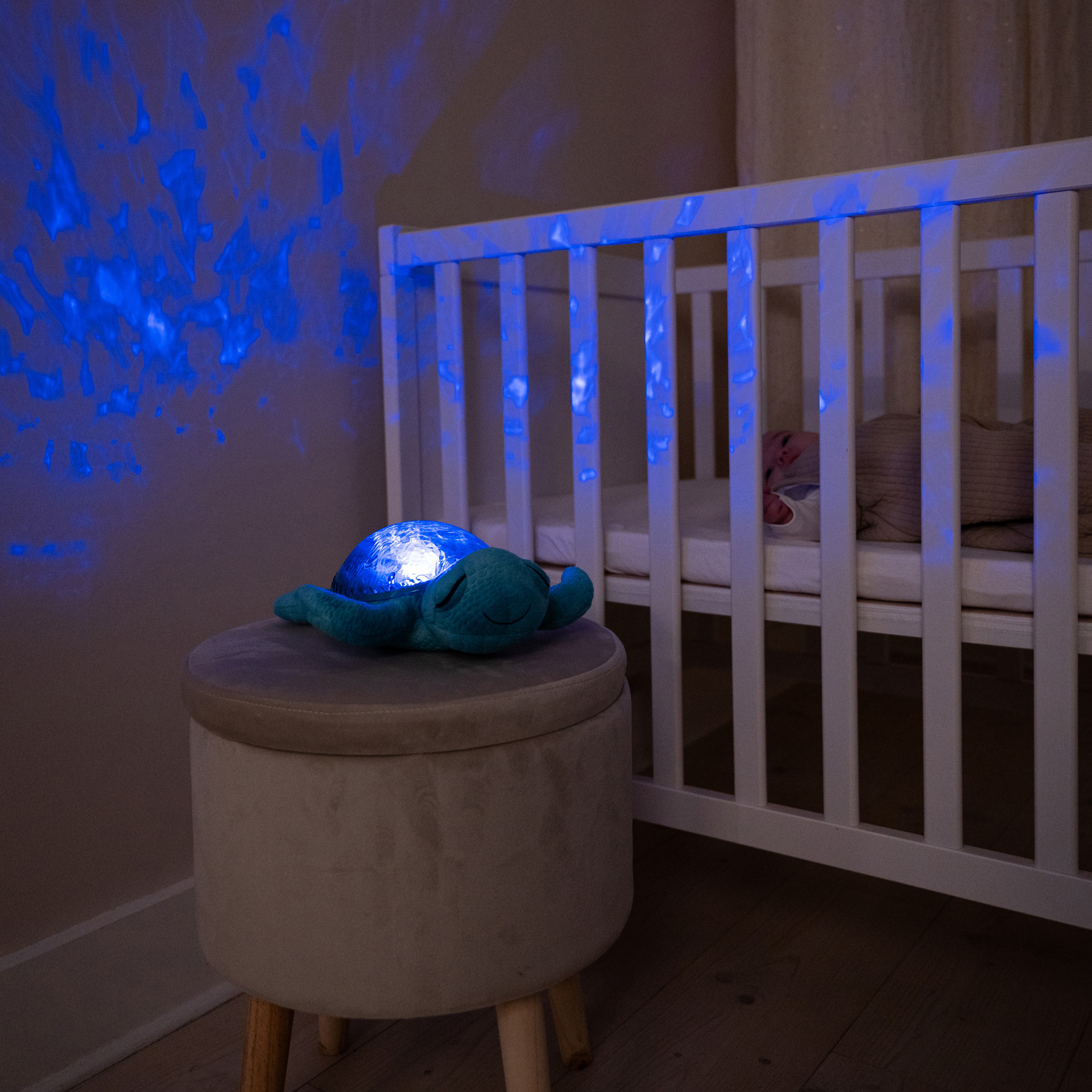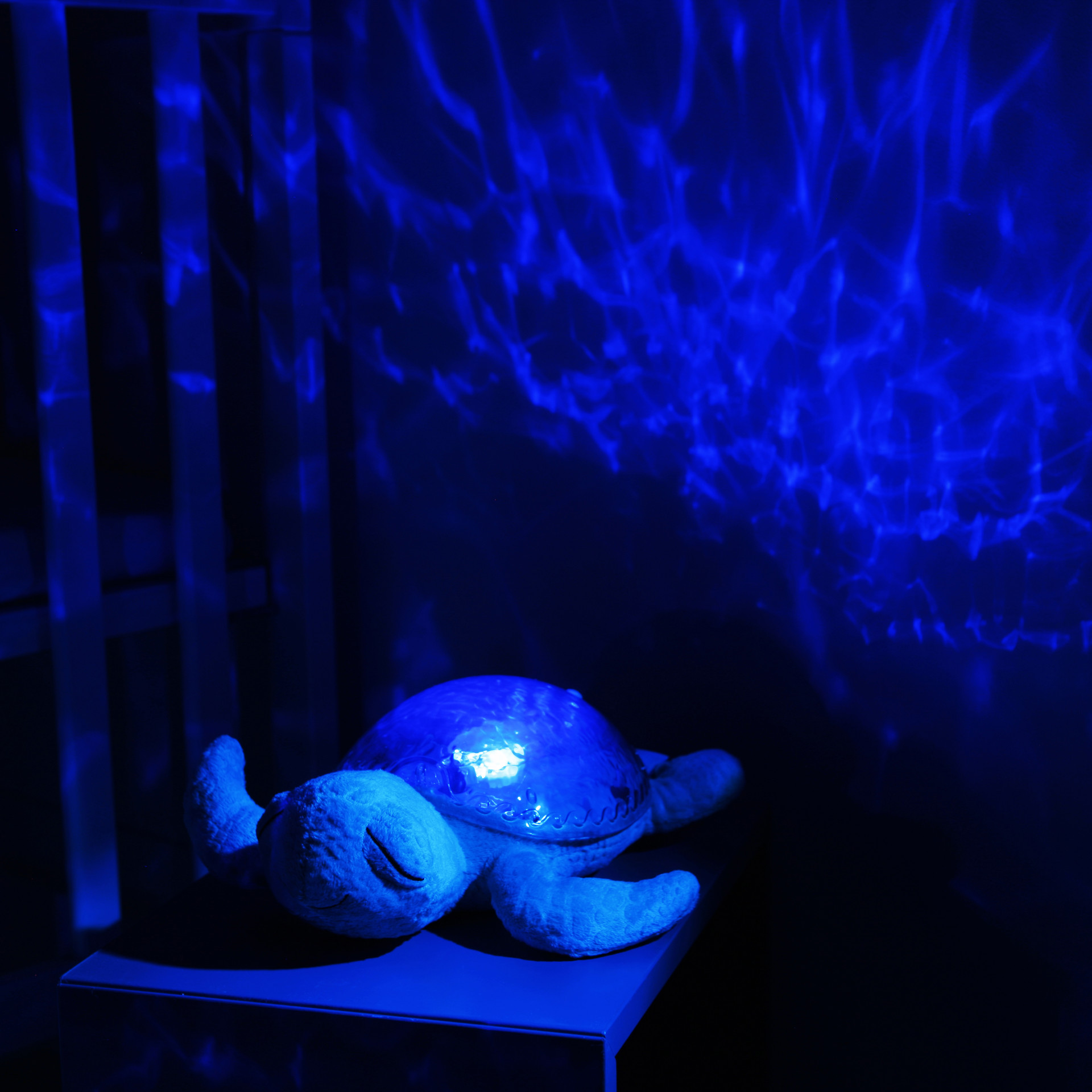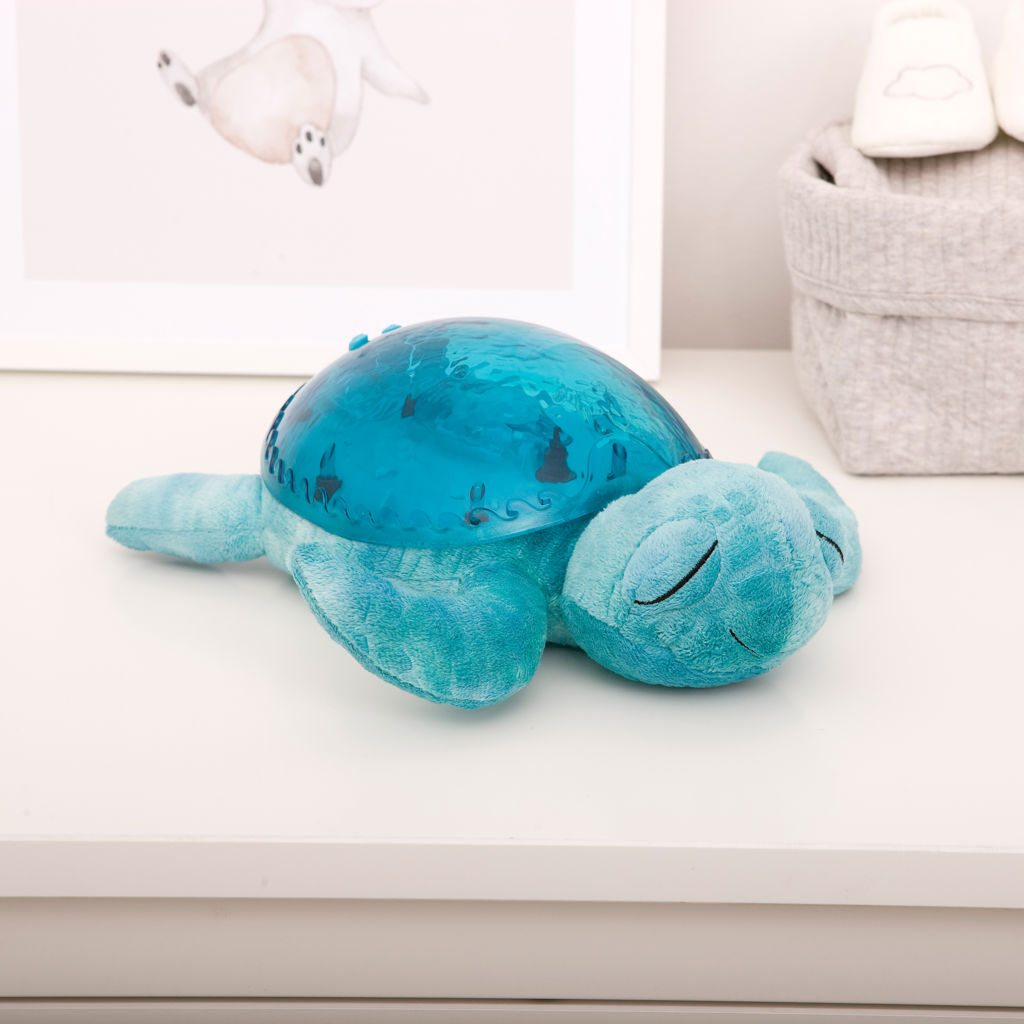 La veilleuse Tranquil Turtle ™ Aqua (Rechargeable) apaise bébé dès sa naissance et rassure les enfants qui ont peur du noir. Douce peluche la journée, elle se transforme en veilleuse la nuit venue. Son effet de lumière sous-marine est magique, grâce aux projections de vagues en mouvements. Ses mélodies et ses bruits blancs apaiseront bébé pour un sommeil relaxant.