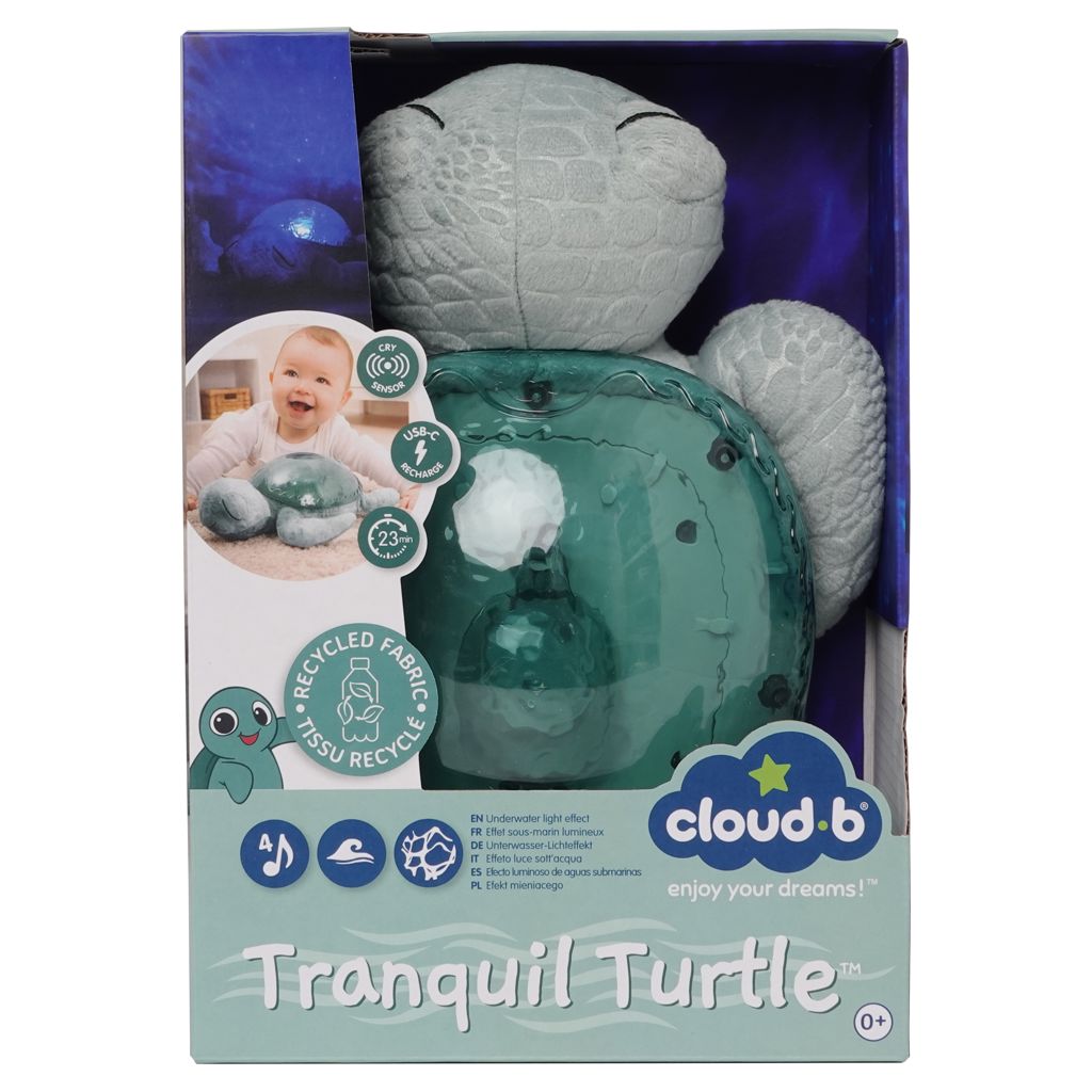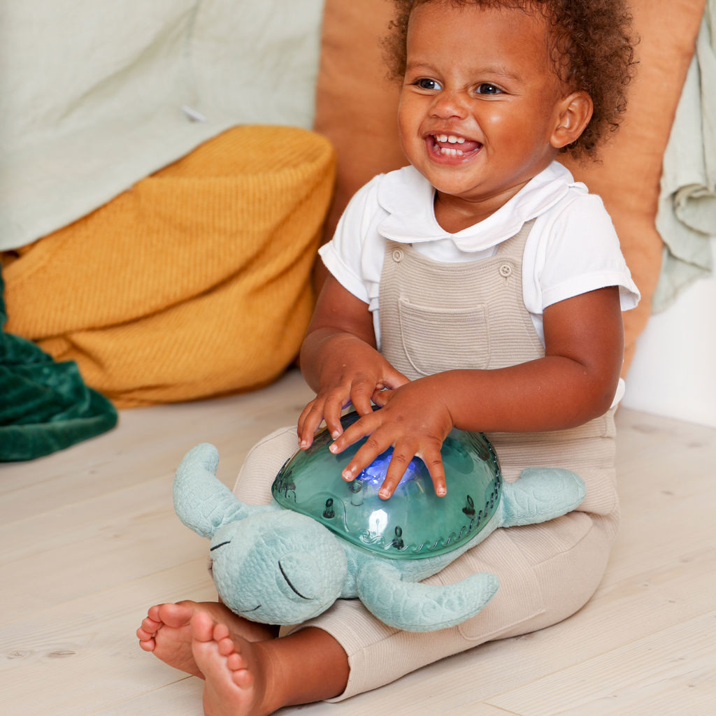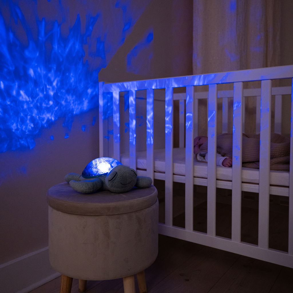 La veilleuse Tranquil Turtle ™ (Rechargeable) apaise bébé dès sa naissance et rassure les enfants qui ont peur du noir. Douce peluche la journée, elle se transforme en veilleuse la nuit venue. Son effet de lumière sous-marine est magique, grâce aux projections de vagues en mouvements.