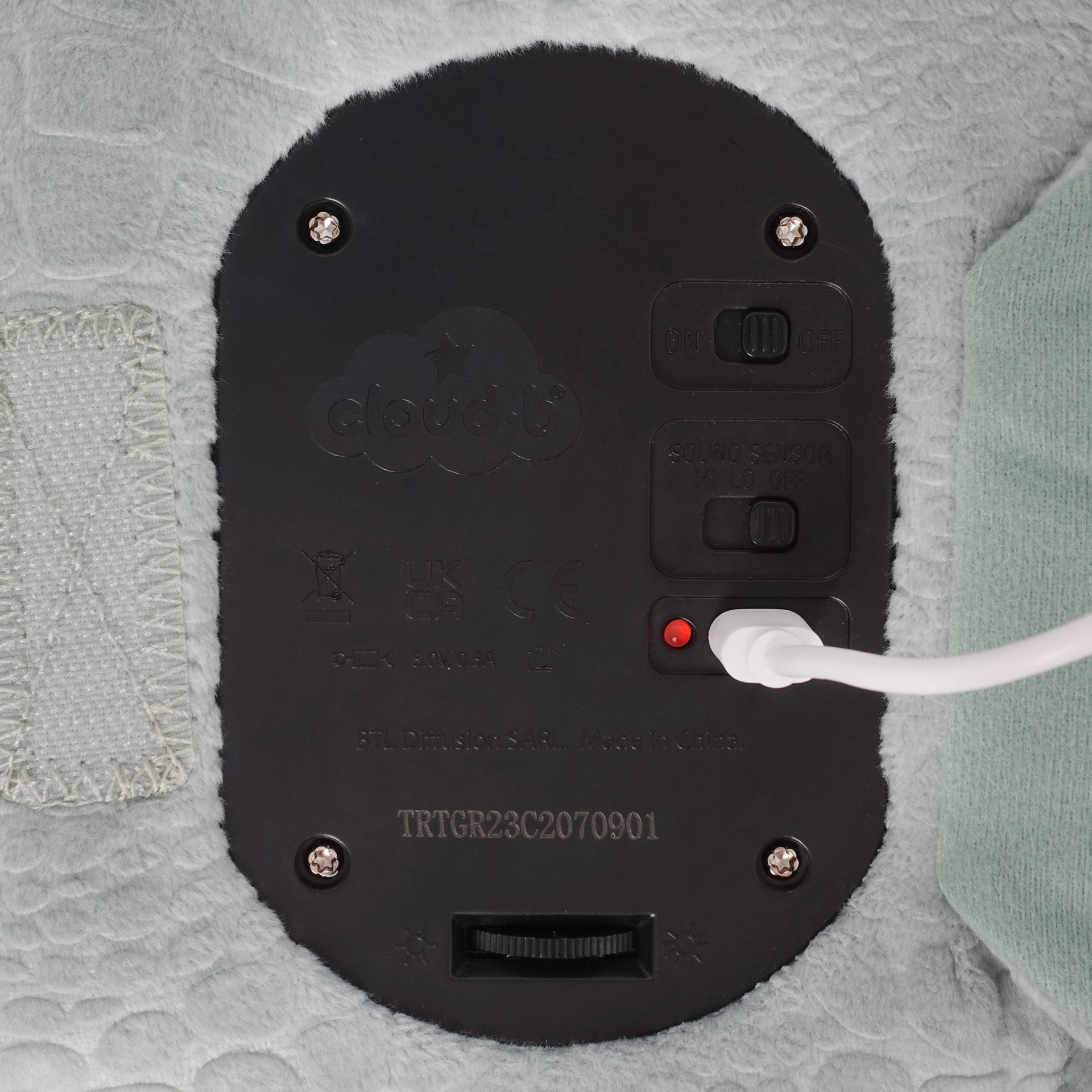 Le minuteur de 23 minutes garantit une obscurité et un silence complets pendant le sommeil profond de l'enfant. La batterie se recharge à l´aide d´un câble USB-C. Tranquil Turtle ™ (Rechargeable) a reçu la certification GRS et est présentée dans un packaging FSC ce qui contribue à la conservation de la biodiversité. Tranquil Turtle ™ (Rechargeable) est une peluche éco-responsable et respectueuse de l´environnement, pour le plus grand bonheur des petits et des grands !