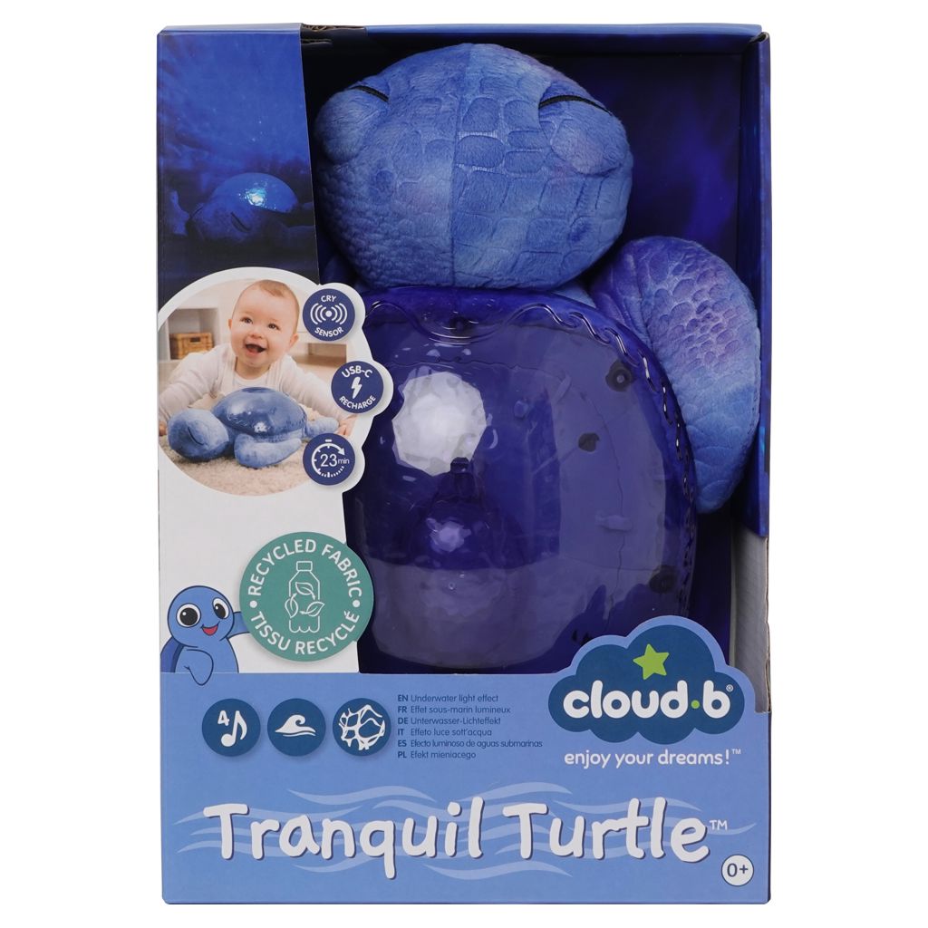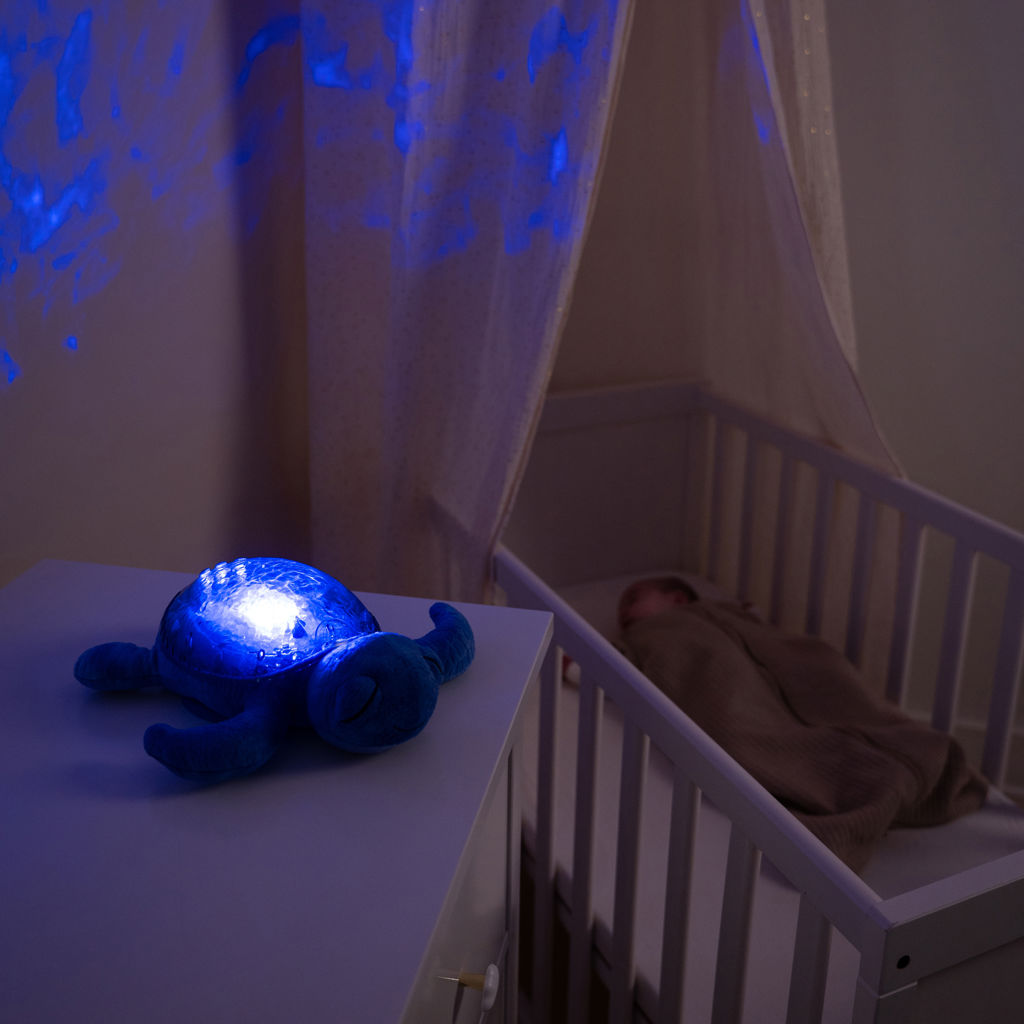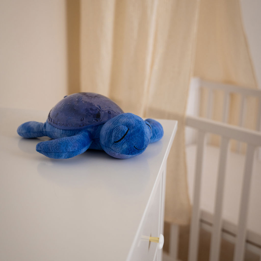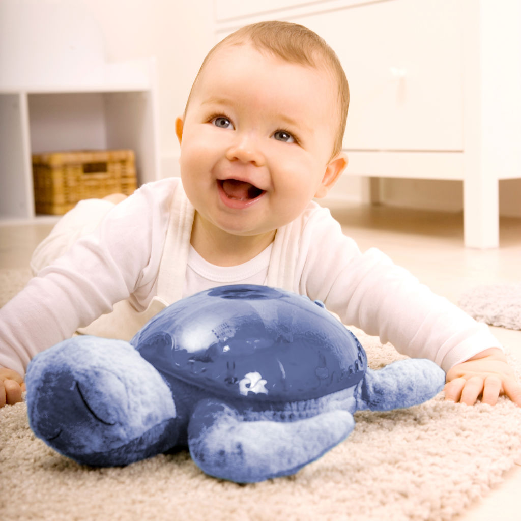 Tranquil Turtle ™ Océan (Rechargeable), jolie tortue musicale fabriquée en fibres 100 % recyclées, issues de bouteilles en plastique qui diffuse une douce lumière et projette sur le plafond de la chambre les vagues de l´océan en mouvement grâce à un mécanisme unique et breveté. La veilleuse Tranquil Turtle ™ (Rechargeable) apaise bébé dès sa naissance et rassure les enfants qui ont peur du noir.