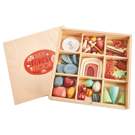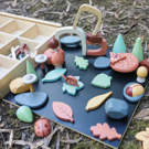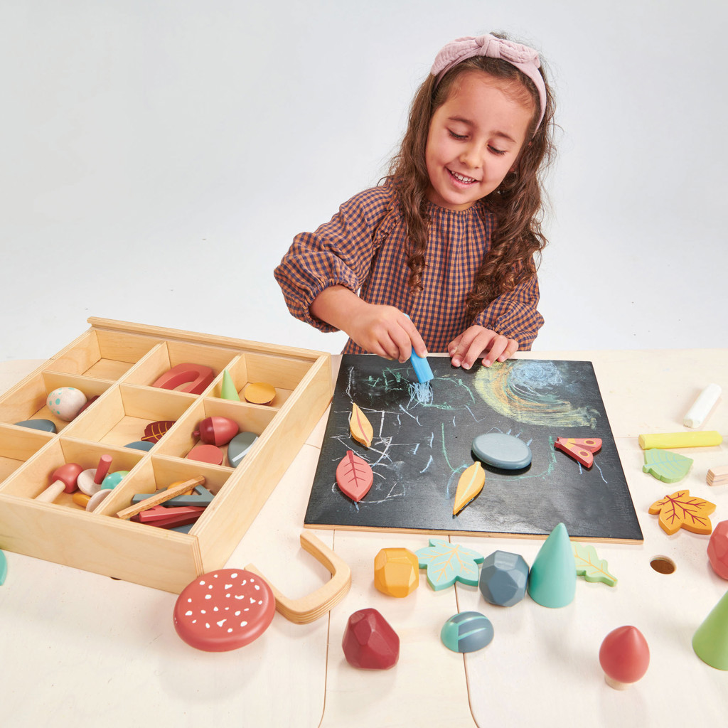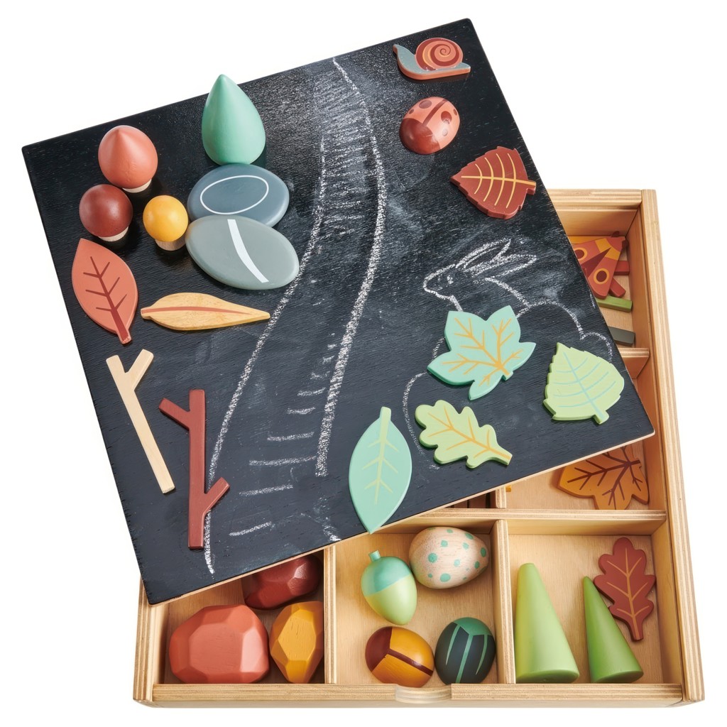 Le couvercle est amovible et peut être retourné et utilisé comme tableau noir sur lequel créer votre sol forestier. Les compartiments en bois peuvent également être retirés et la boîte remplie de sable pour créer une scène de jeu magique dans la forêt.