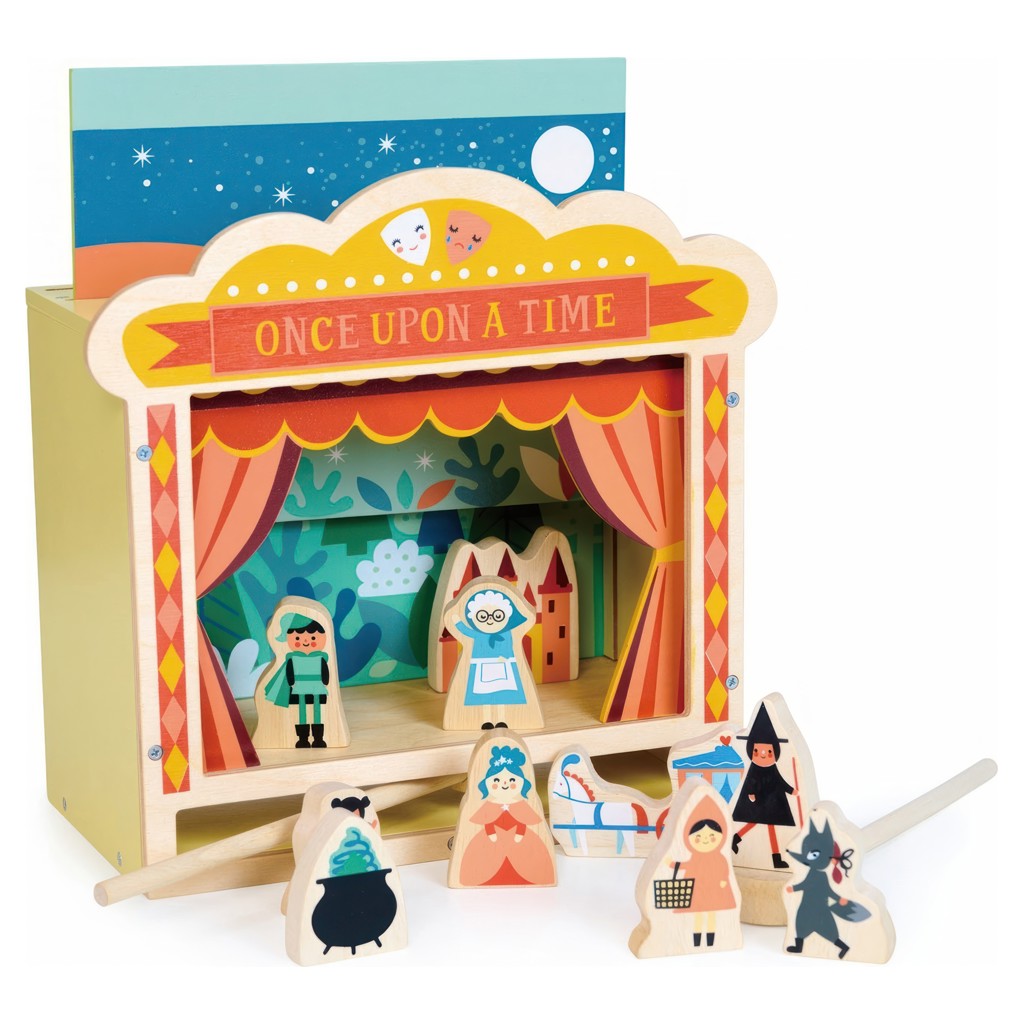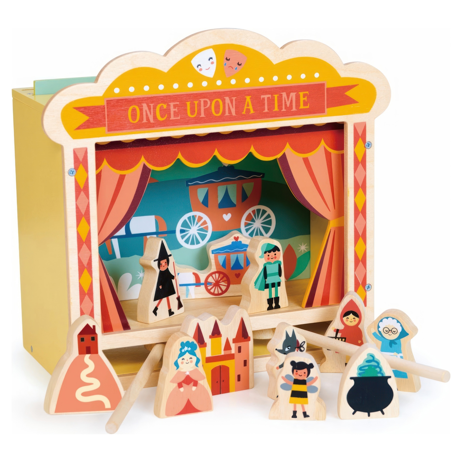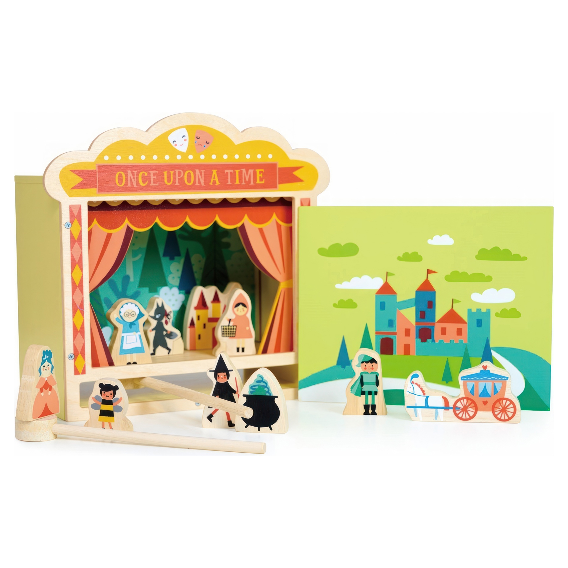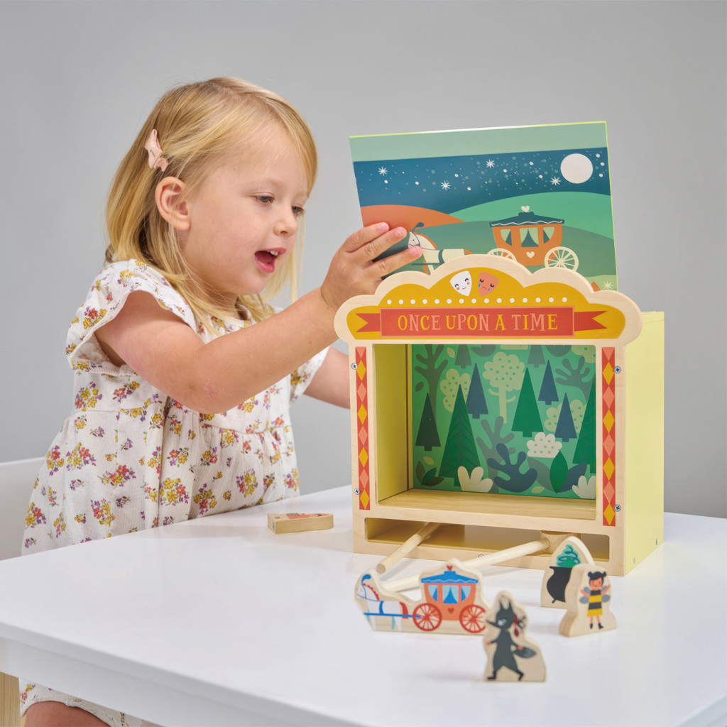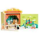 Avec une façade magnifiquement illustrée, un décorateur de rideaux, deux fonds illustrés imprimés des deux côtés et des personnages magnétiques illustrés et des accessoires de scène qui peuvent être déplacés sur la scène avec deux bâtons magnétiques en bois.