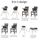 Au fur et à mesure que votre tout-petit se développe, Moa s'adapte d'une chaise haute à un siège d'appoint, à un tabouret pour tout-petit, puis à un bureau et un siège pratiques parfait pour que votre enfant mange, découvre, joue et grandisse.