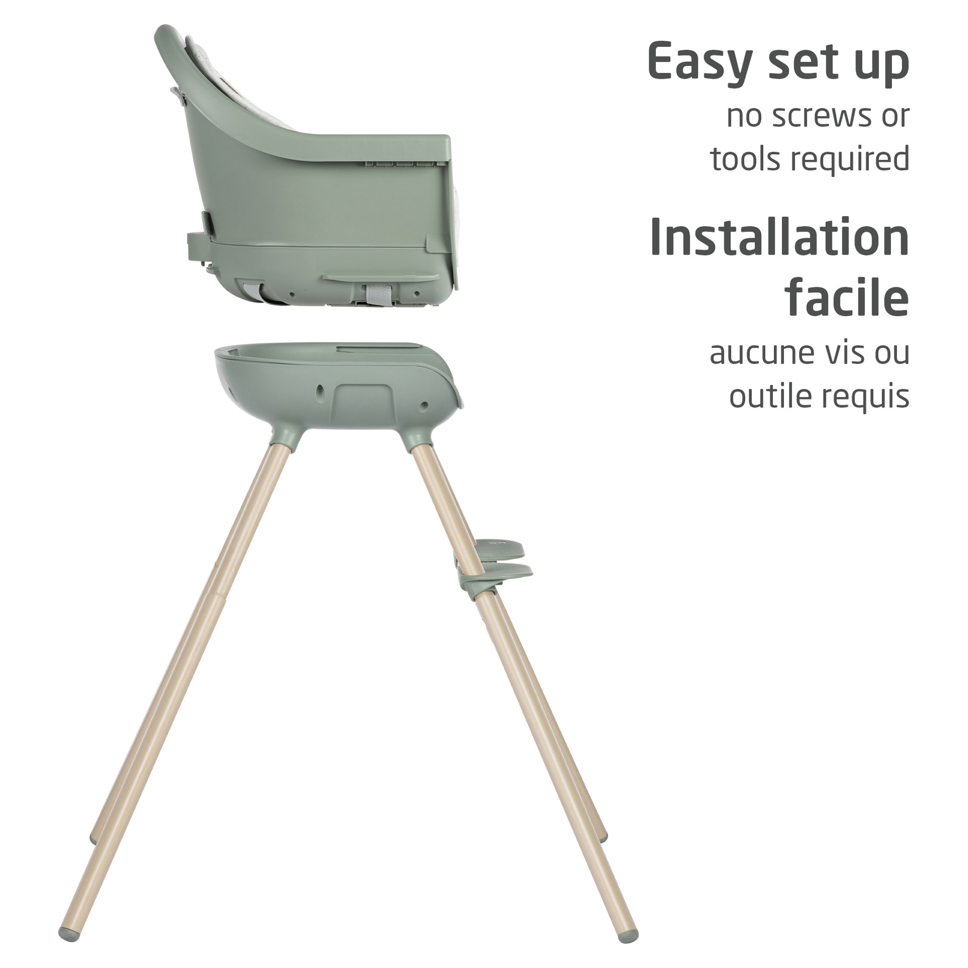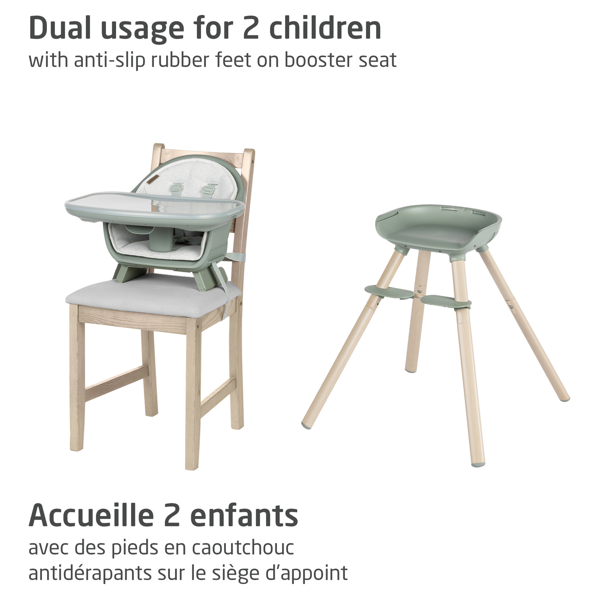Au fur et à mesure que votre tout-petit se développe, Moa s'adapte d'une chaise haute à un siège d'appoint, à un tabouret pour tout-petit, puis à un bureau et un siège pratiques parfait pour que votre enfant mange, découvre, joue et grandisse.