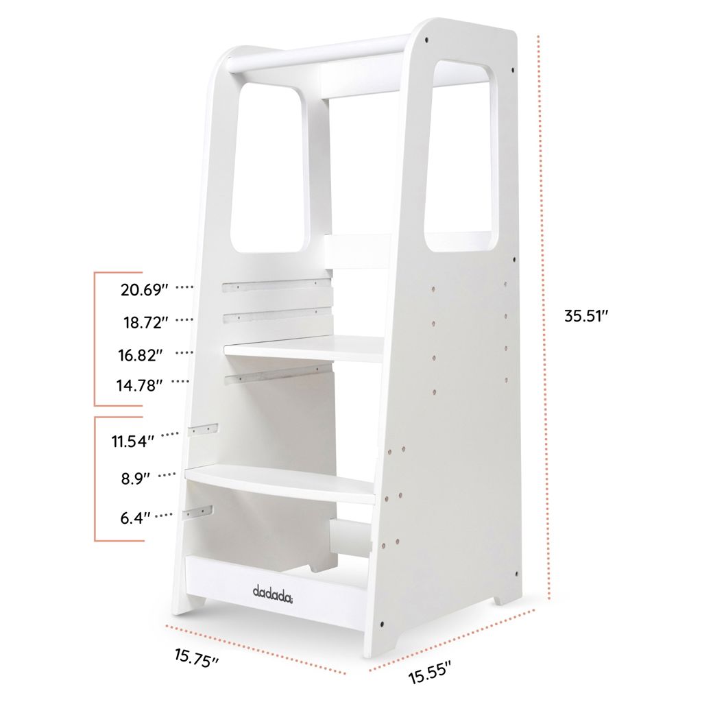 Fabriquée avec la même qualité de fabrication que celle de nos berceaux et commodes, la Tour pour tout-petits est conçue pour aider les tout-petits en pleine croissance à atteindre en toute sécurité les tables pour bricoler, les plans de travail pour découvrir de nouvelles saveurs et les lavabos pour s'entraîner à se laver les mains et à se brosser les dents en toute autonomie.