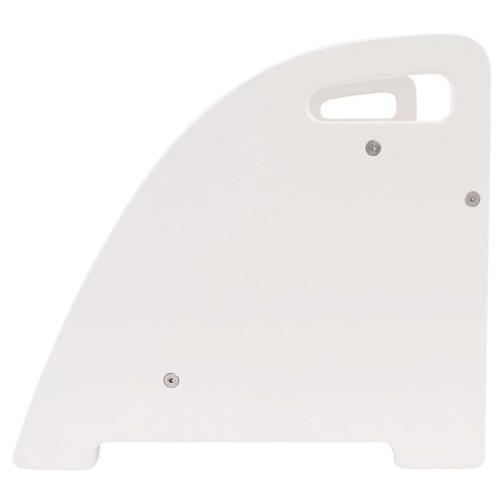 Avec un dossier droit, le tabouret peut être poussé à plat contre un mur, tandis que les trous pour les poignées permettent de le transporter facilement.