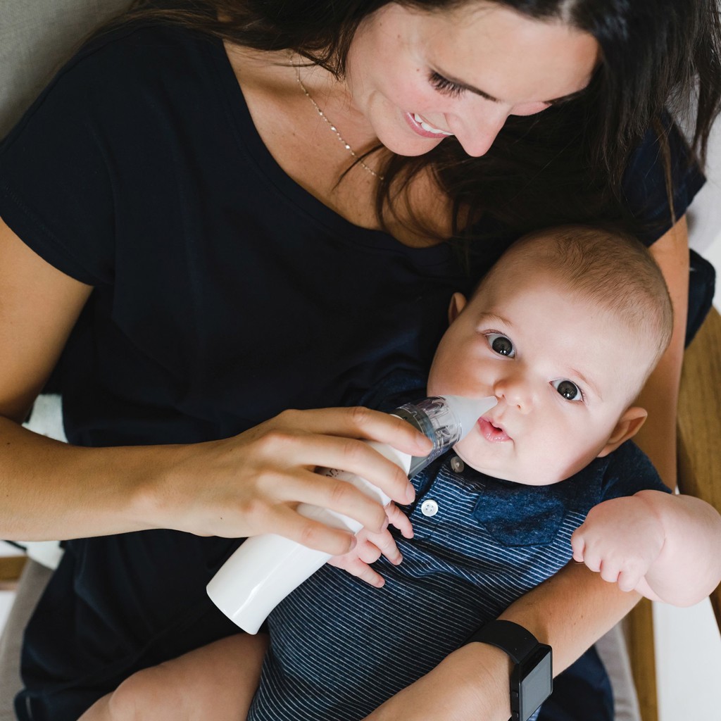 Retirez en douceur l´excès de mucus du nez de bébé sans l´irriter avec l´aspirateur nasal à piles Rinö. Avec son aspiration continue et non agressive, il est sans danger pour les nouveau-nés, les nourrissons et les tout-petits. Les embouts réutilisables en silicone de qualité médicale (taille pour nourrissons et tout-petits comprise) et permettent de dégager le nez de bébé selon un processus rapide et sécuritaire qui minimise la contagion. Le Rinö ne nécessite pas l´utilisation de filtres supplémentaires et est égalment facile à nettoyer et à stériliser.