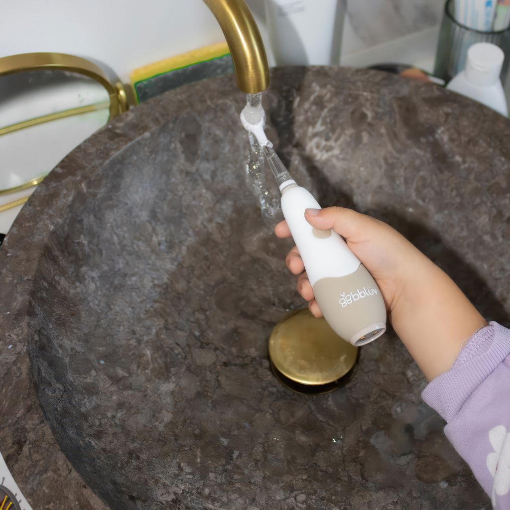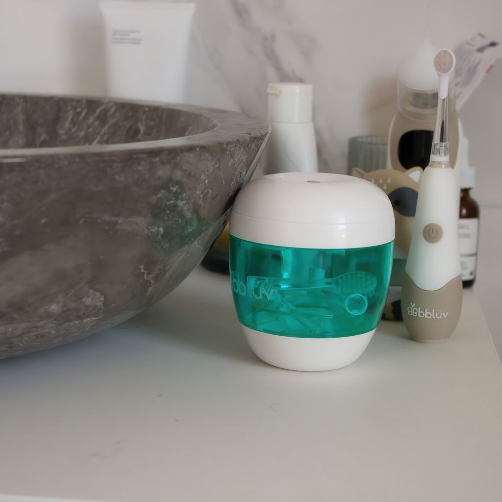 La Sönik pro de Bblüv, est une brosse à dents électrique, rechargeable, avec lumière LED et vibrations pour l'apprentissage de l'hygiène bucco-dentaire.