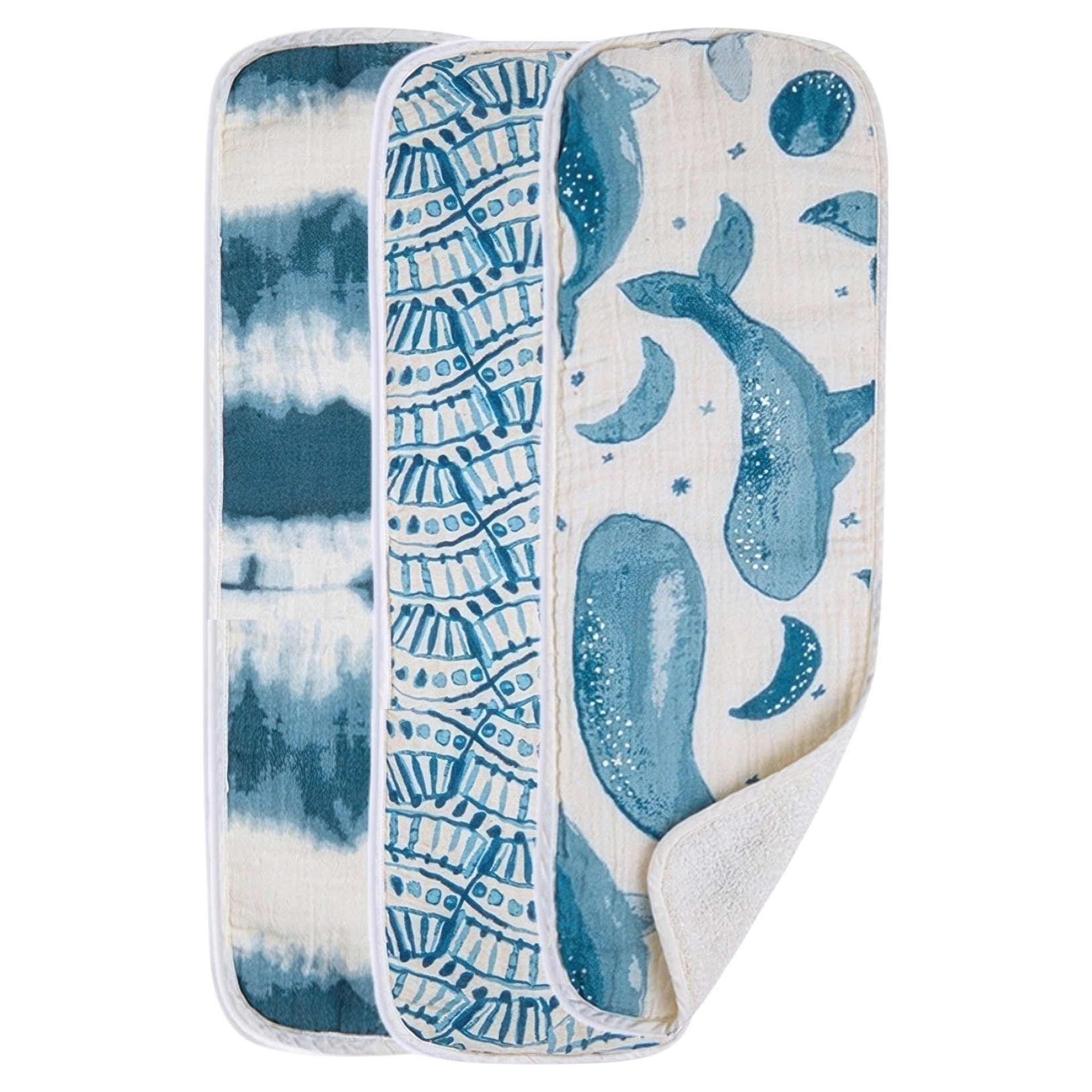 Voici un ensemble de serviettes pour le rot qui s'harmonisera à la perfection avec une chambre de bébé décorée dans les tons de bleu ou sur le thème de la mer.