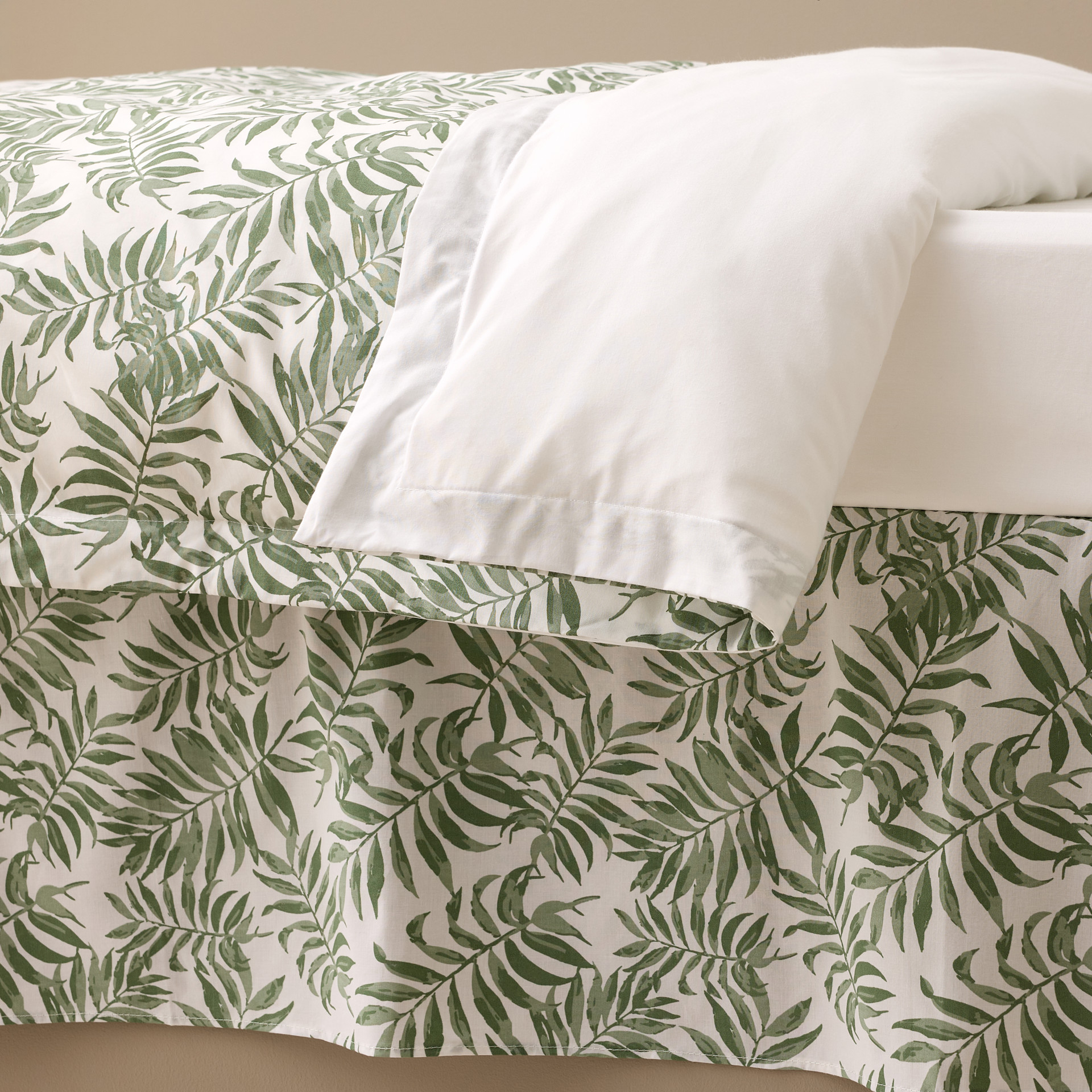 Ensemble 4 morceaux comprenant une couette, une housse de couette, un drap contour et une jupe de lit.