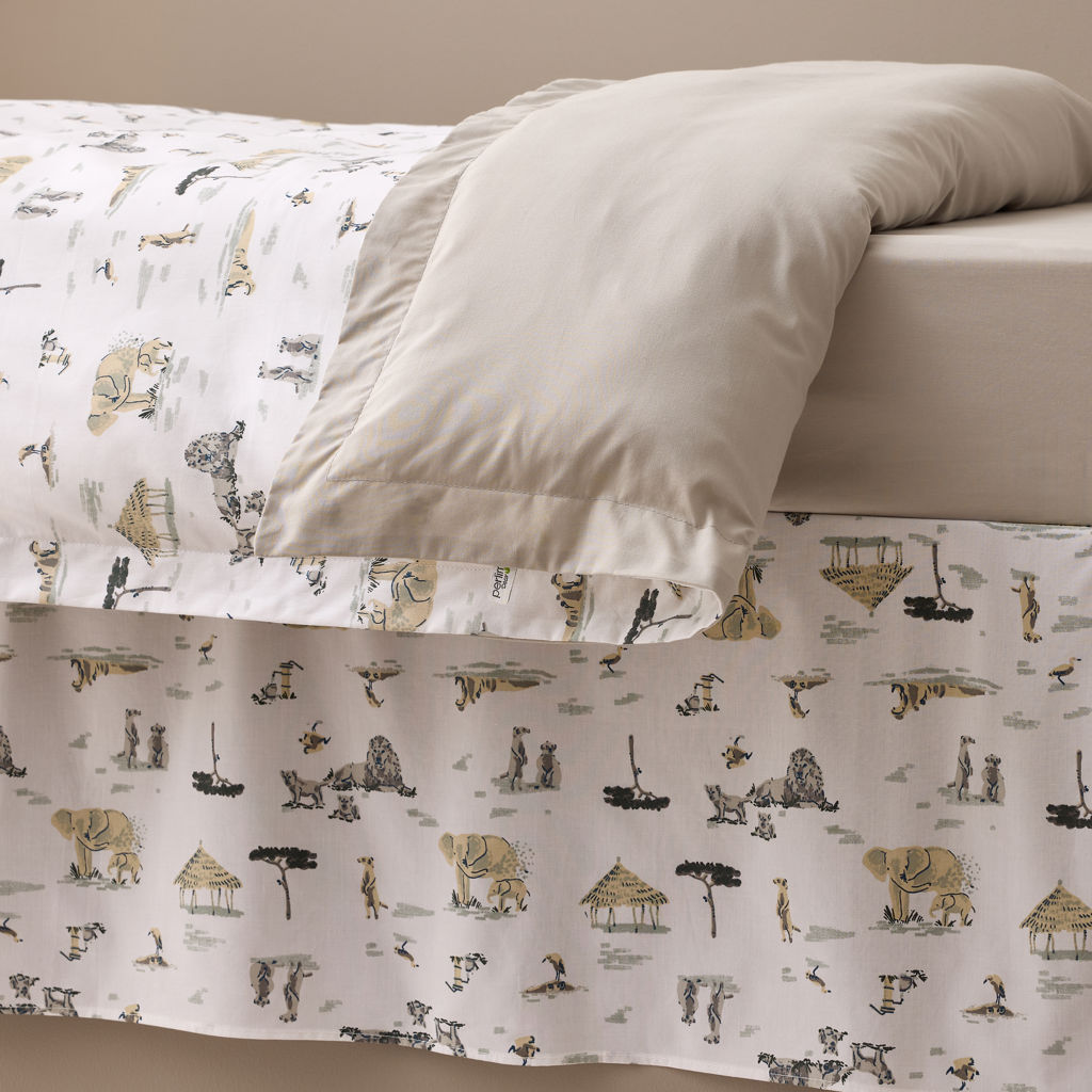 • Ensemble 4 morceaux comprenant une couette, une housse de couette, un drap contour et une jupe de lit.