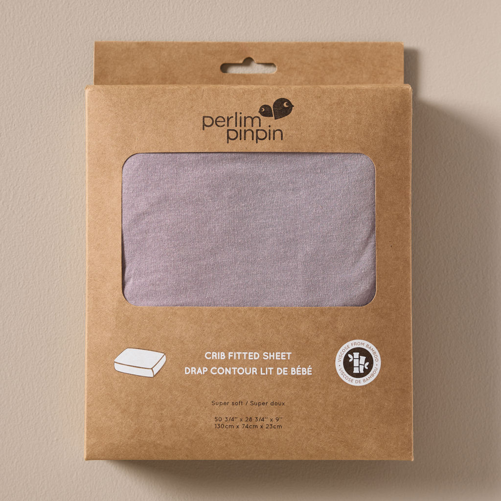 Drap contour unisexe pour lit de bébé en bambou de couleur mauve. Conception canadienne.