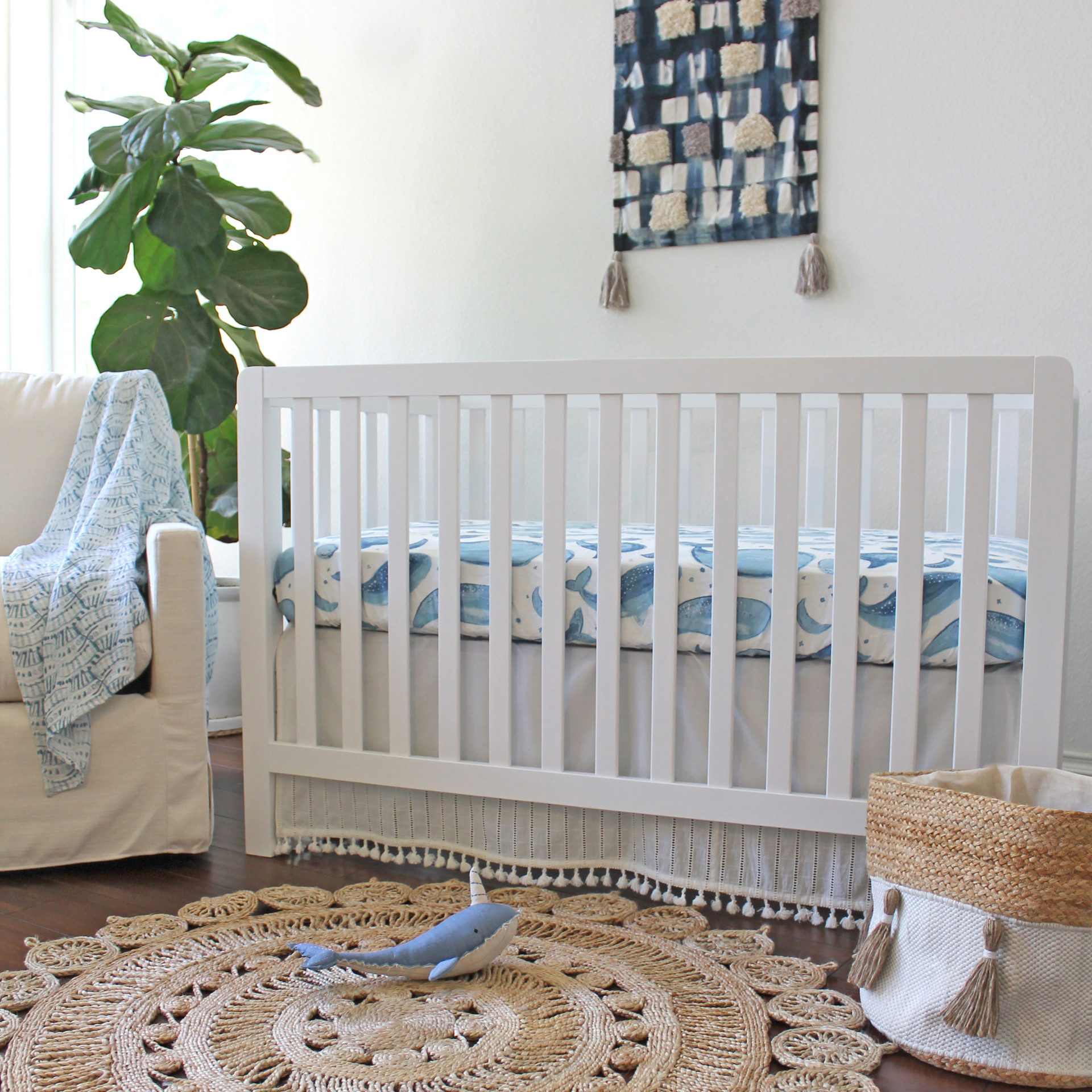 Parfait pour une chambre de bébé décorée sur le thème de la mer, le drap-housse à baleines Caspian ornera de belle façon le lit de votre bébé. Les tons de bleu, les lunes et les étoiles offrent à bébé un environnement apaisant qui favorise la détente. Ce drap entièrement fait de satin de coton qui s'adoucit à chaque lavage transportera bébé au pays des rêves.