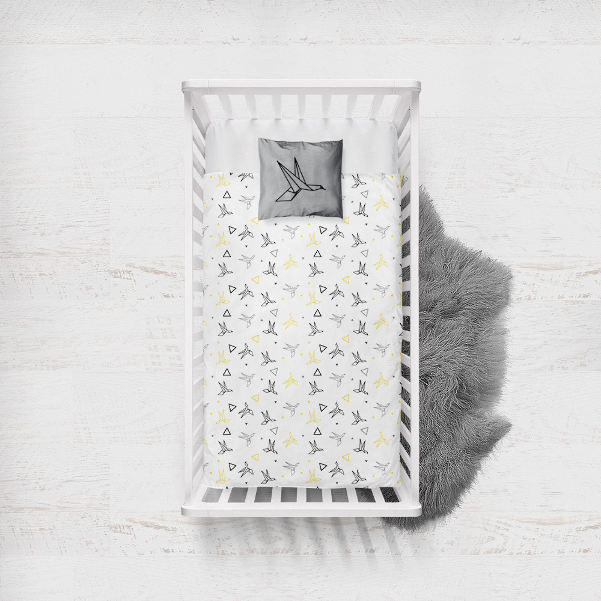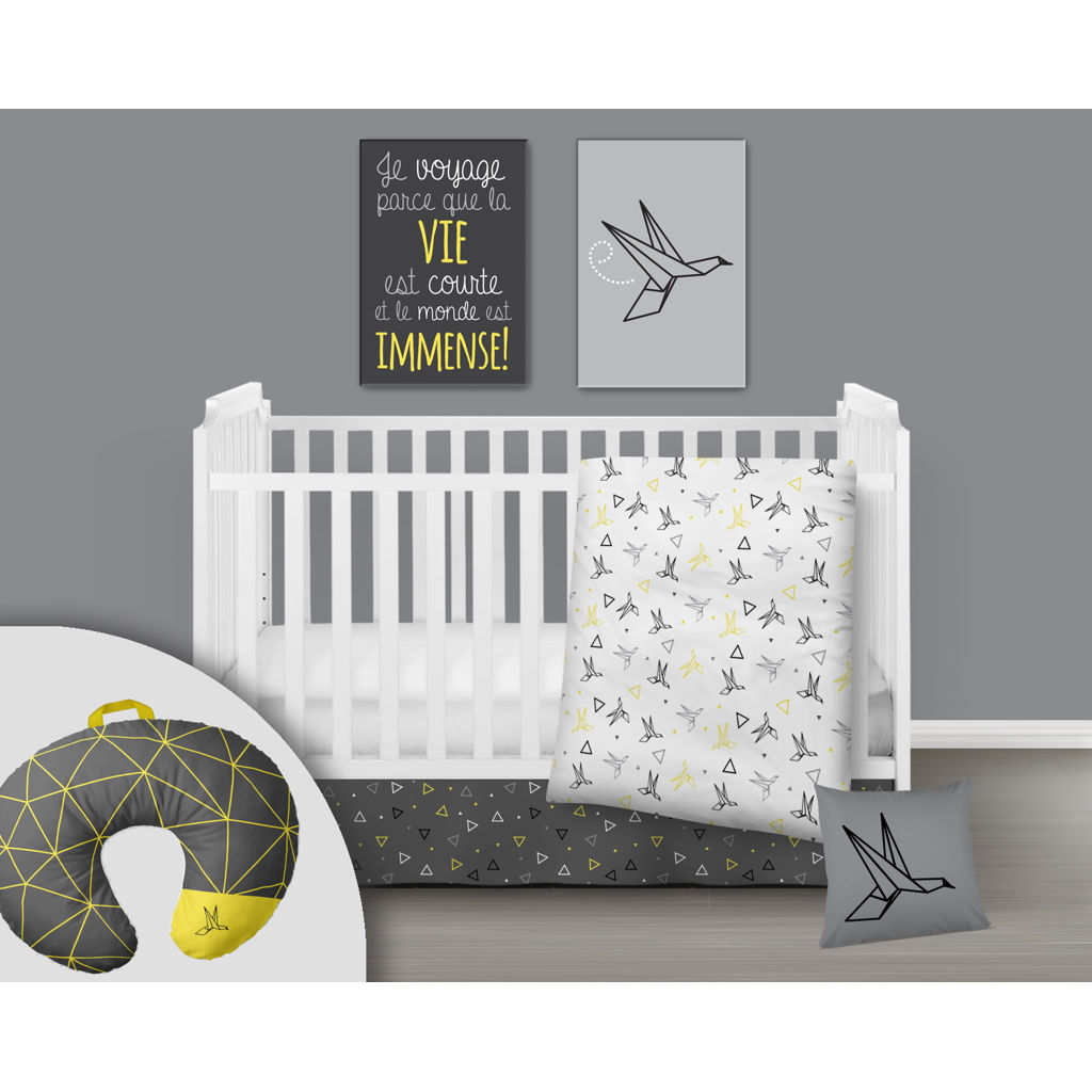 Ensemble 3 morceaux de literie pour bassinette thème ENVOL, fait au QUÉBEC