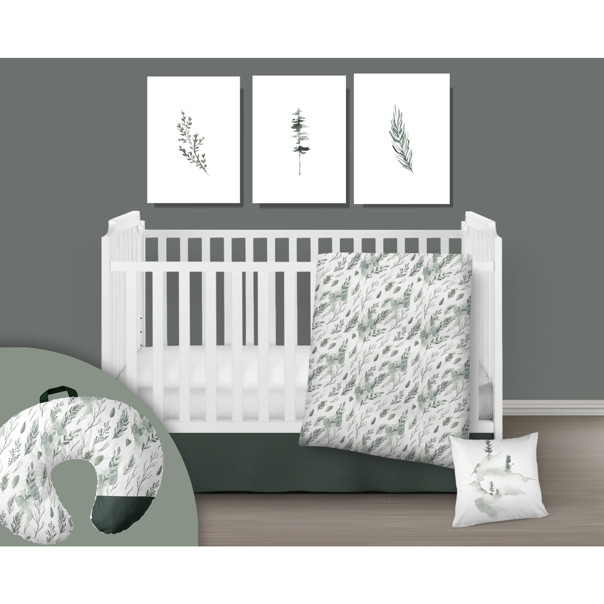 Ensemble 3 morceaux de literie pour bassinette thème BEAUTÉ NATURE, fait au QUÉBEC