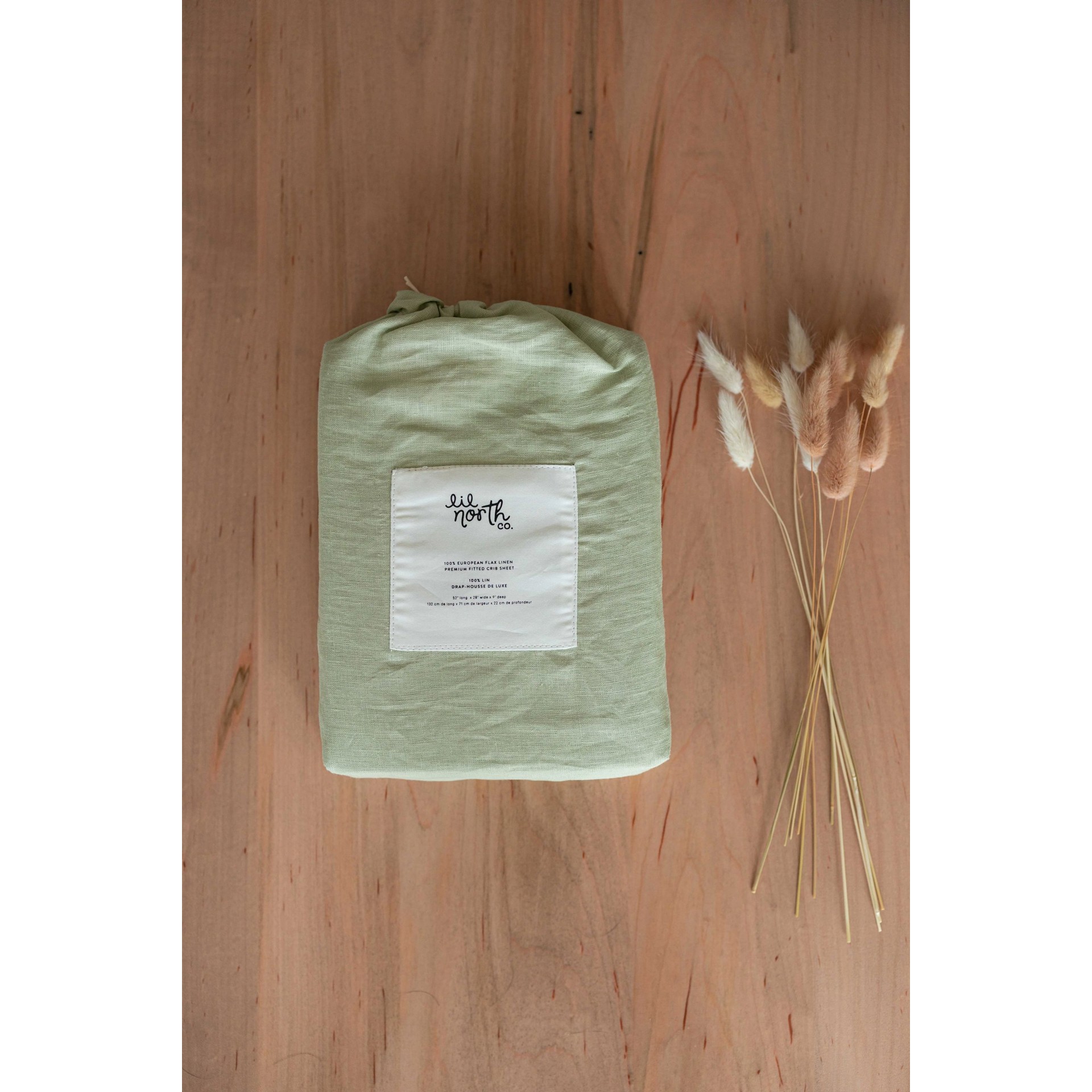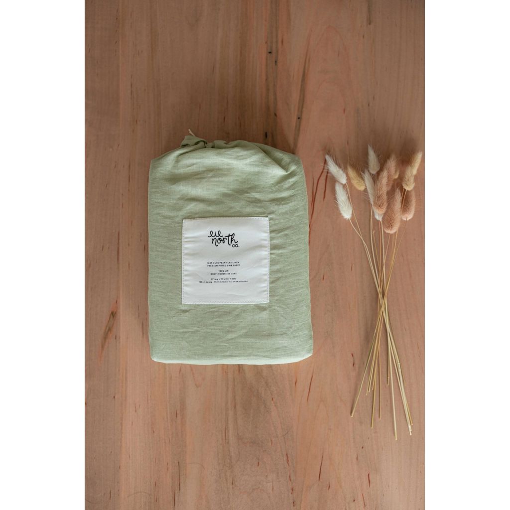 Drap de berceau en lin vert sauge Lil North 300004