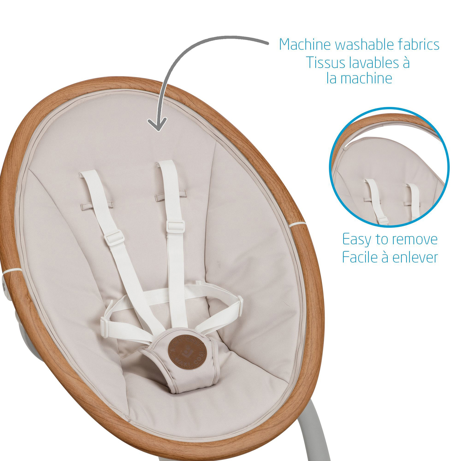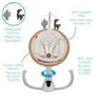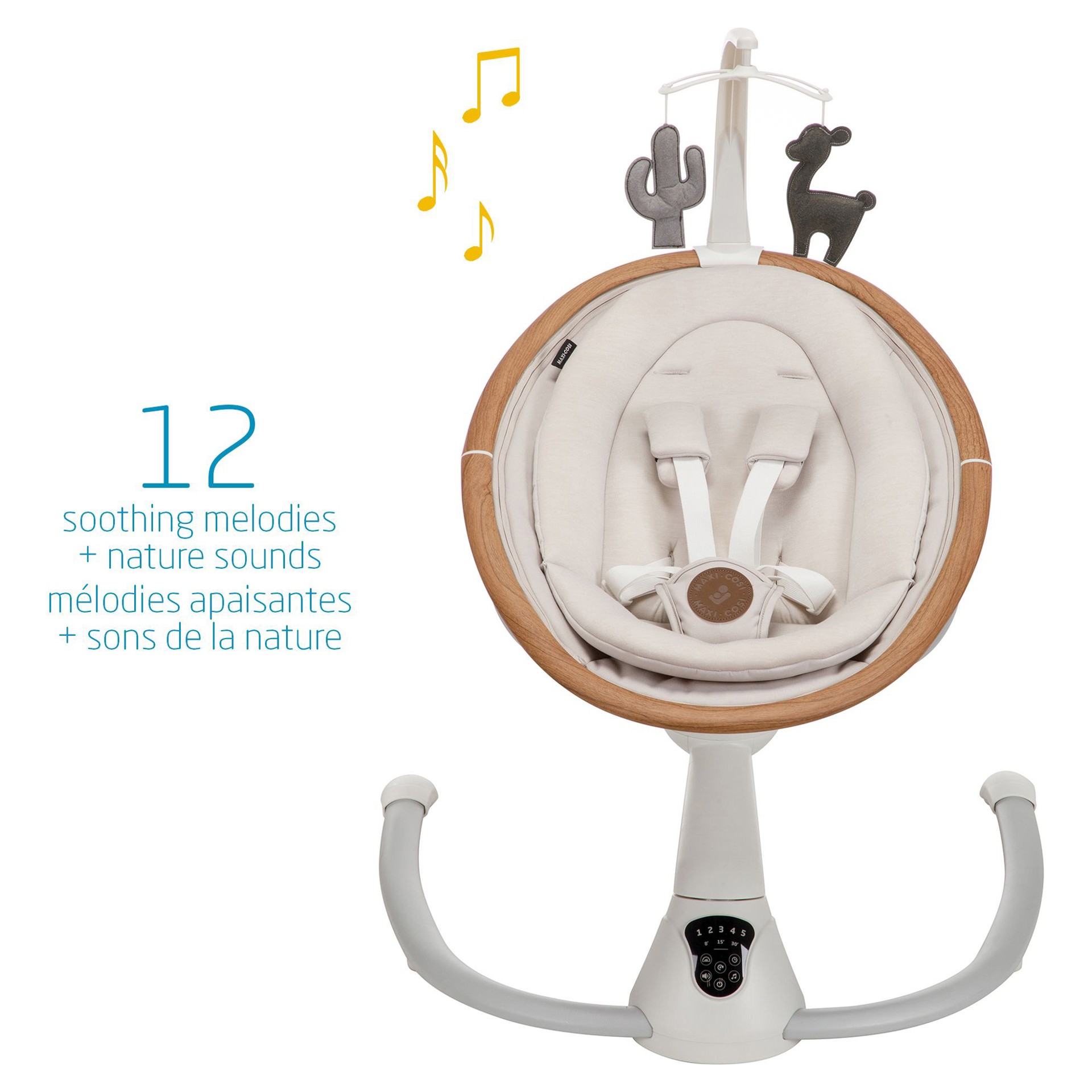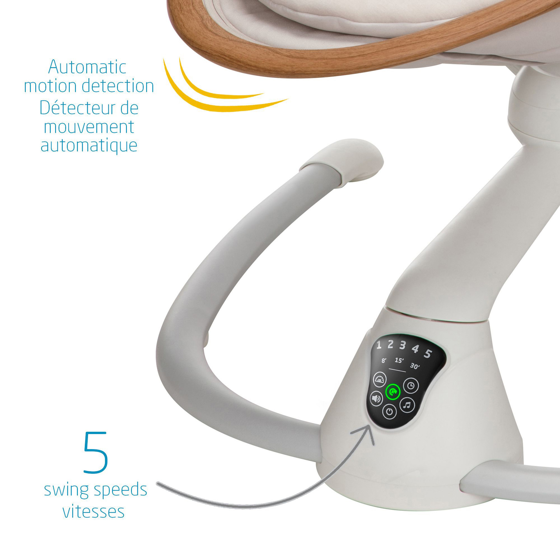 Cette balançoire élégante a la beauté et l'intelligence tout comme vous, elle sait instinctivement quand et comment bercer votre bébé lorsqu'il est agité, grâce au détecteur de mouvement automatique. La Cassia active simplement la balançoire lorsqu'elle reconnait que votre bébé a besoin de plus de confort.