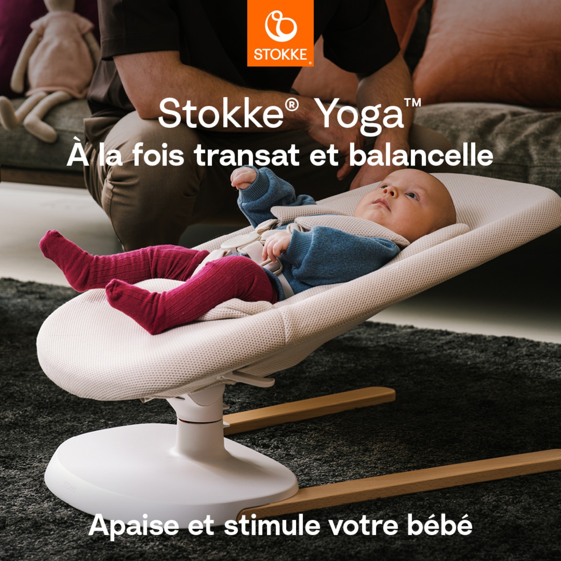 Apaisez, divertissez et stimulez votre bébé avec Stokke® Yoga™. Ce transat à double mouvement, à la fois transat et balancelle, est conçu pour les plus petits nouveau-nés. Il crée un espace sûr et confortable pour se reposer et jouer, tout en offrant un mouvement rythmé qui favorise le développement et la coordination. Avec un mouvement de balancement apaisant et un rebond stimulant, ce transat et balancelle s'adapte aux besoins de votre bébé : il assure son confort et favorise son développement, tout en vous libérant les mains pour faire des activités ou jouer avec lui.