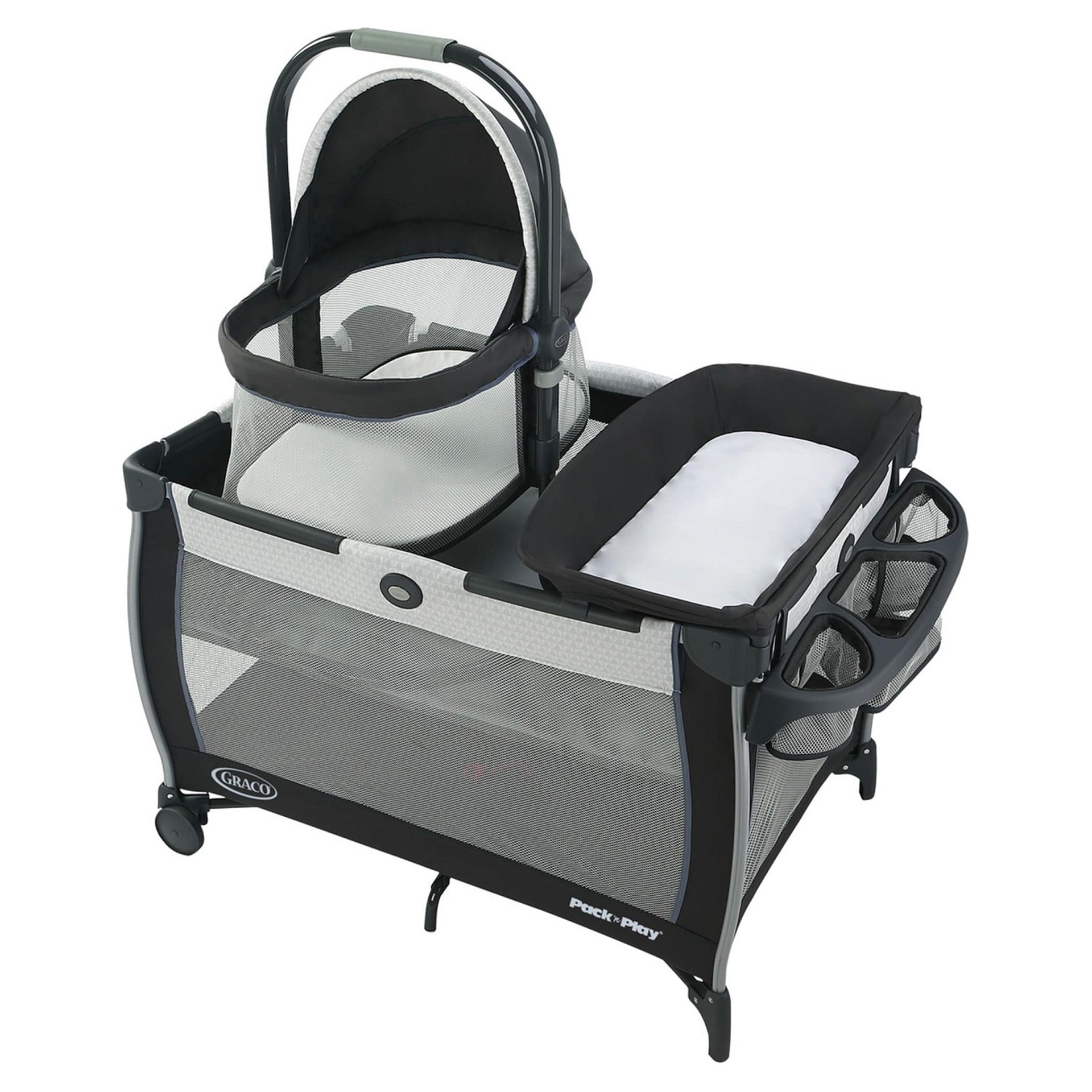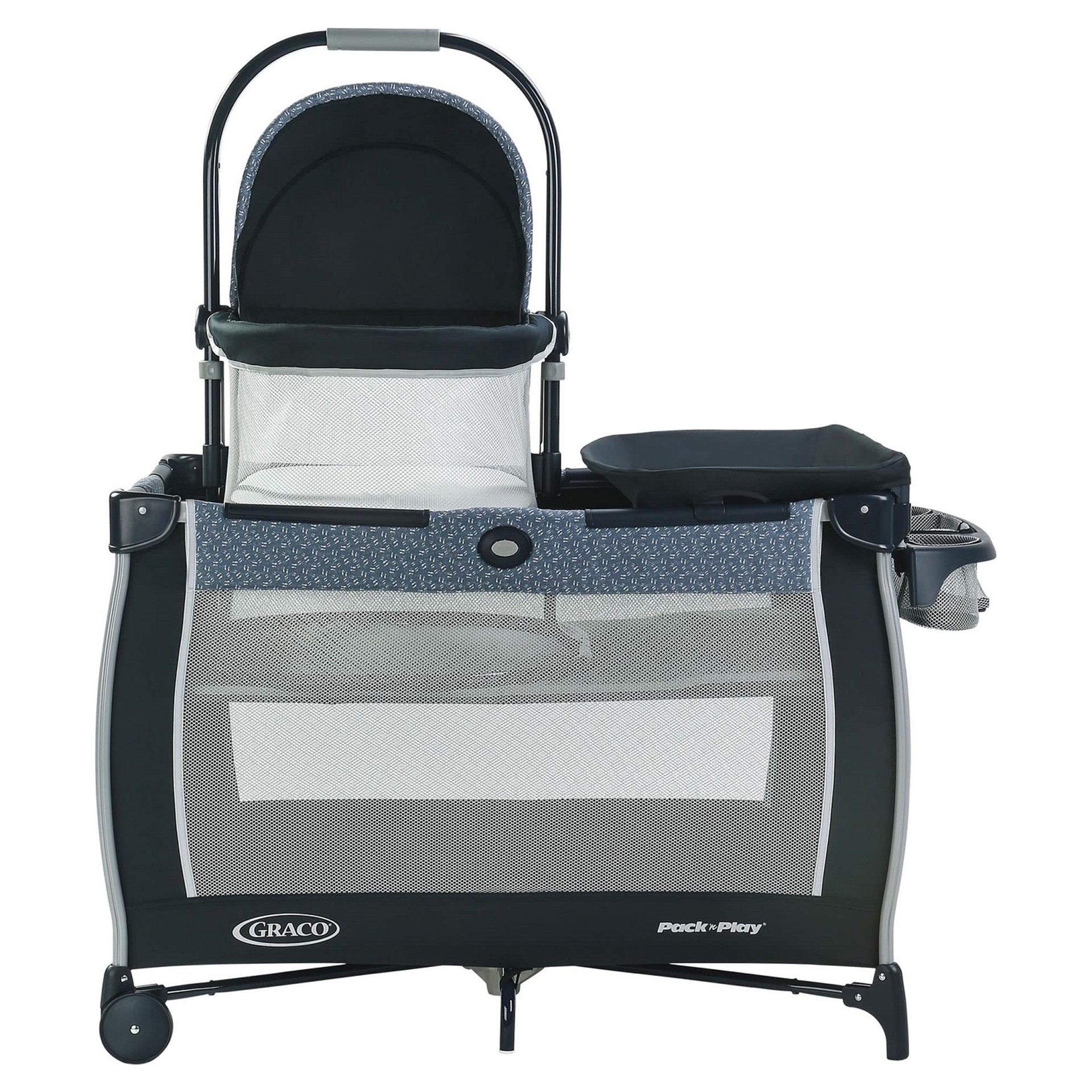 La bassinette/parc à jeu Graco® Pack 'n Play®Day2Dream™ combine les caractéristiques commodes d’un espace de jeu traditionnel avec une bassinette de lit polyvalente pour offrir plusieurs endroits de repos et de jeu dans la maison. La bassinette portative peut servir dans et hors du parc à jeu pour maintenir votre bébé à la vue et à côté de vous. La bassinette de lit a 3 positions en hauteur et des côtés en treillis aéré pour toujours vous offrir une vue dégagée du bébé. Quand il est dans le parc à jeu, la bassinette est relevée en position bébé au niveau de vos yeux. Un poste de changement de couche est doté de tissus à nettoyage par essuyage pour un entretien facile, et un organiseur de rangement intégré garde tous les articles essentiels à portée de la main. La bassinette pleine grandeur offre un espace élevé pour le repos du bébé, et le parc à jeu se transforme facilement en un spacieux parc à jeu pour trottineur, idéal pour le repos ou le jeu. Facile à plier et à ranger avec le pliage à boutons-poussoirs Signature de Graco. Des draps compatibles sont disponibles et vendus séparément. Avec la bassinette/parc à jeu DayDream, vous pouvez garder le bébé en vue pour une nuit de repos.