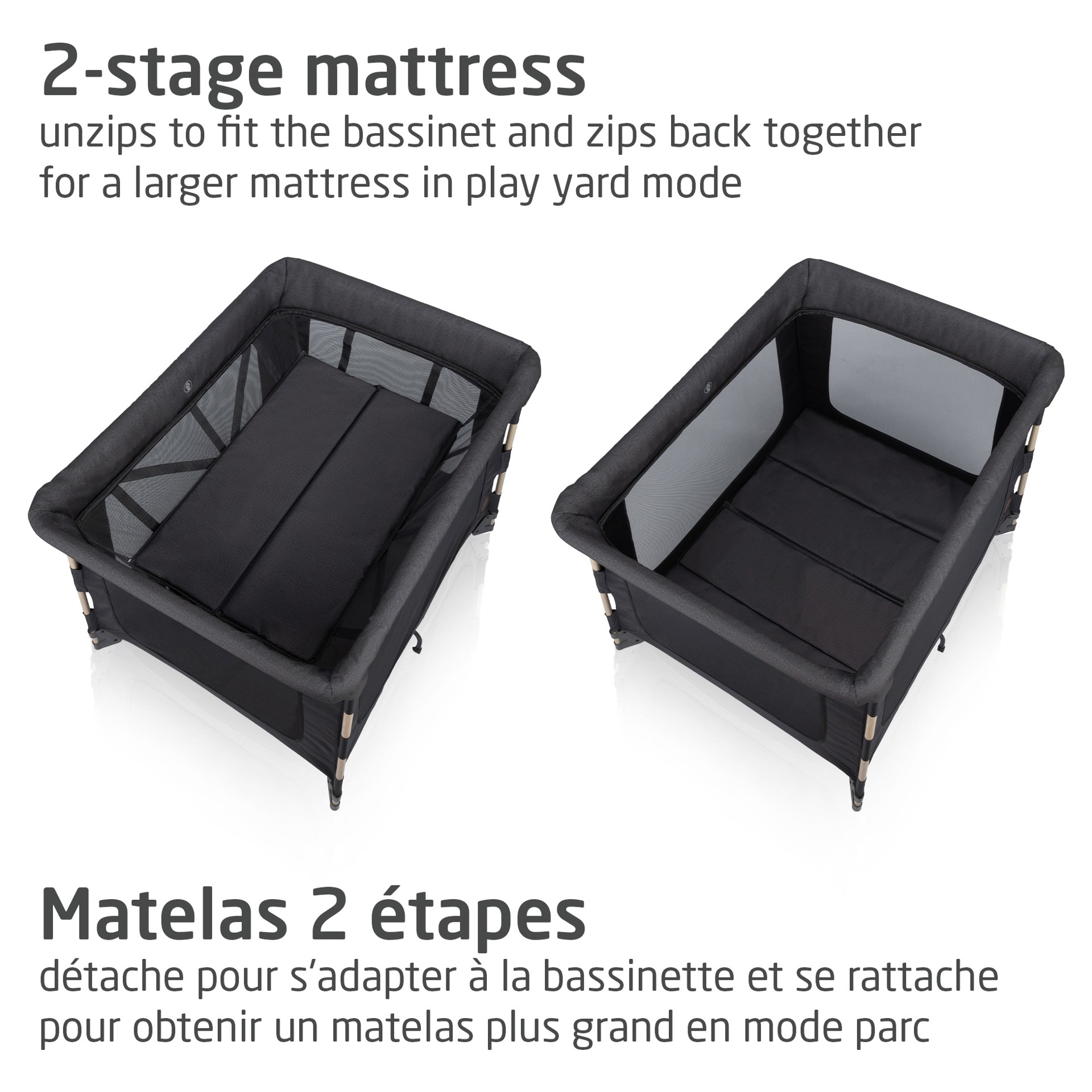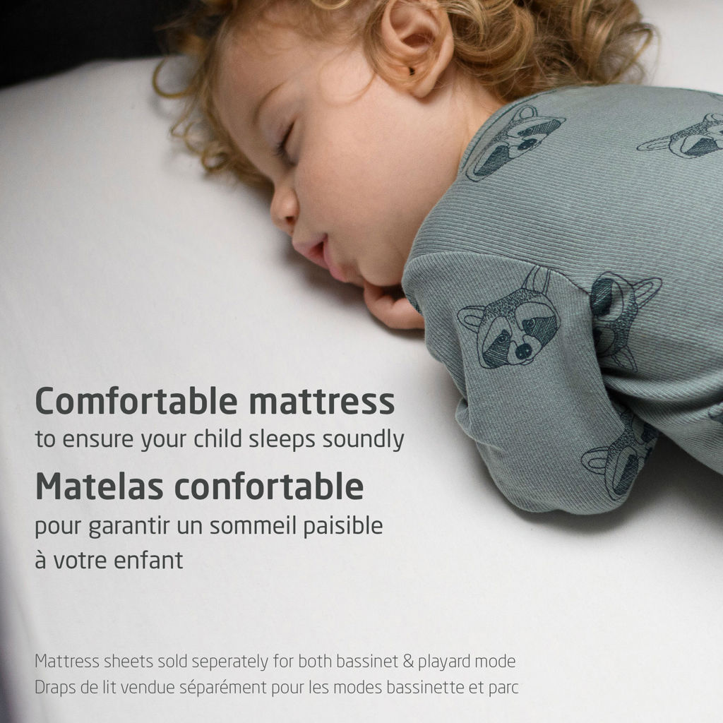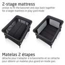 Le Swift est conçu pour grandir avec votre enfant, offrant trois utilisations différentes en un seul produit pratique. Le matelas unique à 2 niveaux peut être ajusté au fur et à mesure que votre enfant grandit. Lorsque votre enfant passe au parc, le matelas se transforme en une surface plus grande et plus confortable pour la sieste ou le jeu.