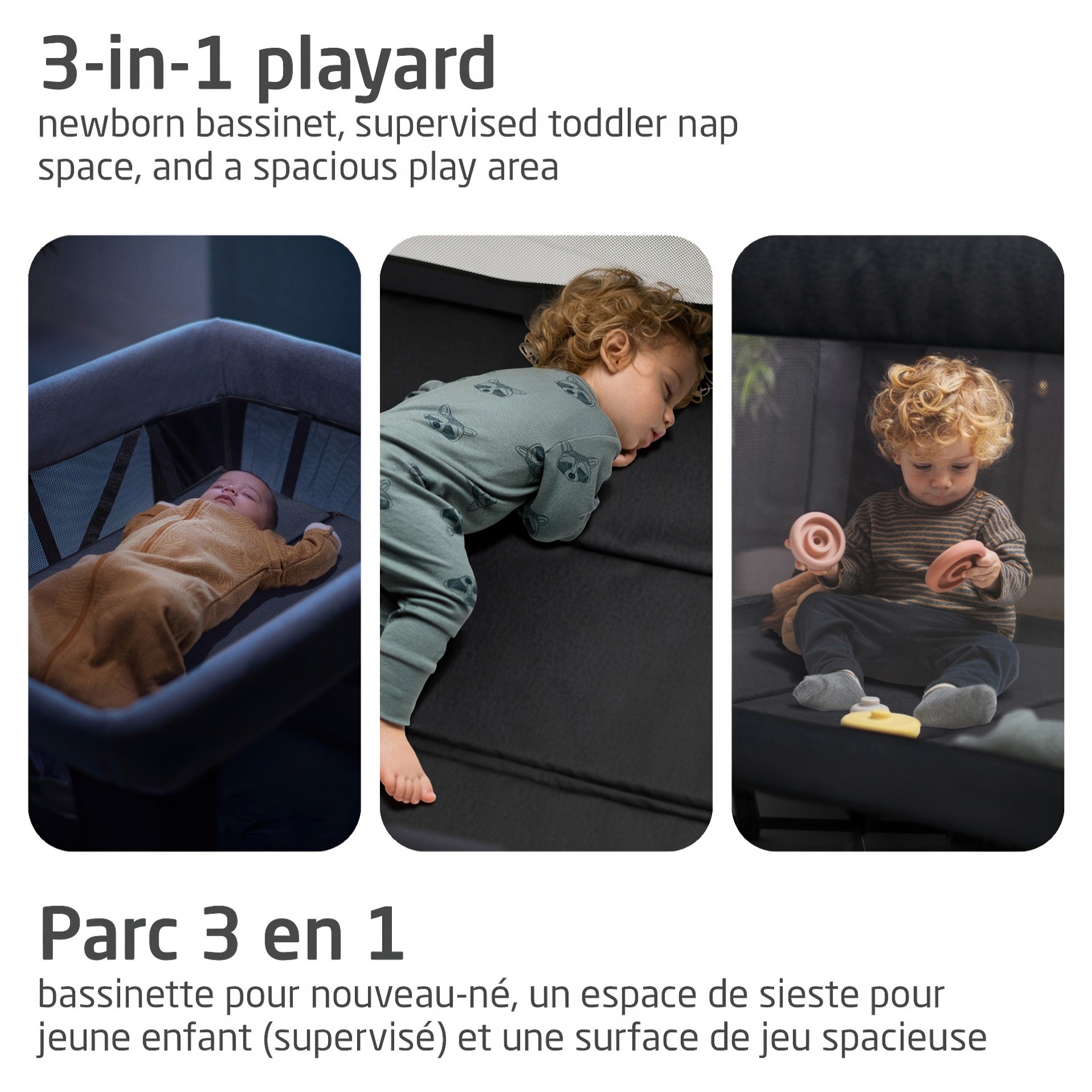 La vie de famille est rythmée par la routine : jeu, sieste, et puis tout recommence. Voici le Swift, un parc de voyage léger 3-en-1 qui se transforme en bassinette pour nouveau-né, en espace de sieste pour les tout-petits et en surface de jeu spacieuse.