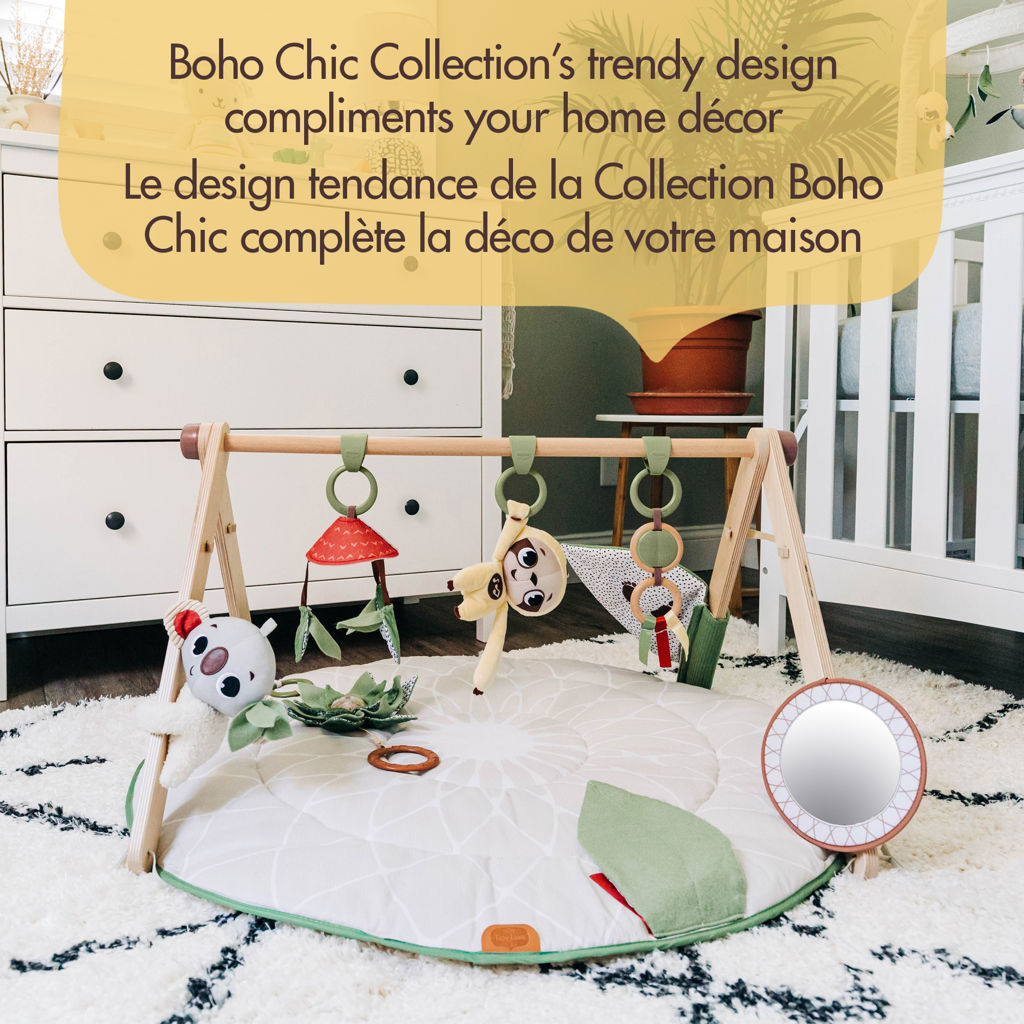Avec un total de 20 activités ludiques, le nouveau Gymini de développement de luxe Boho Chic engagera bébé dans une créativité continue et des expériences d'apprentissage tout en soutenant six compétences de développement.