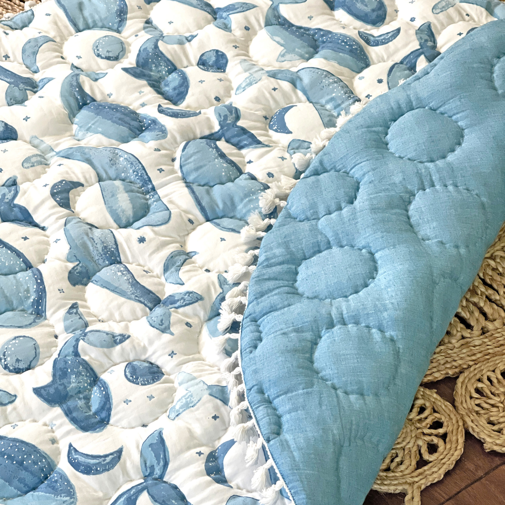 Grâce au tapis de jeu piqué Caspian, l'espace de vie de votre bébé sera empreint d'une atmosphère de sérénité. Parfait pour le jeu en position ventrale, ce superbe tapis orné à la main est lavable à la machine.