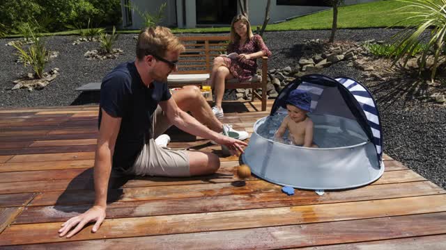 • Haute protection anti-UV FPS 50+3 en 1 : aire de jeux, lit d'appoint et grand point d'eau