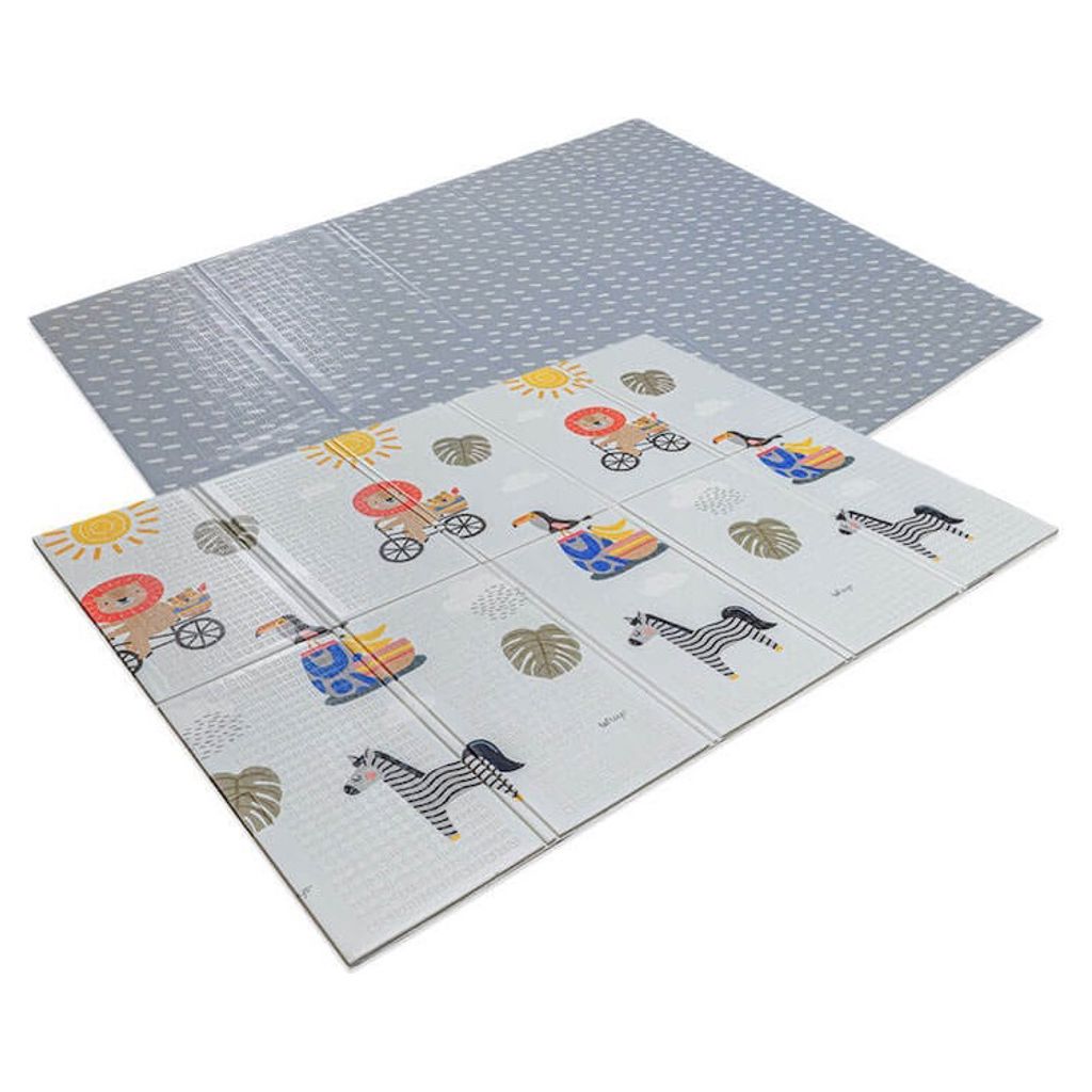 Tapis en mousse réversible, 2 motifs, un motif coloré adapté aux bébés à un imprimé décoratif moderne pour deux looks en un.