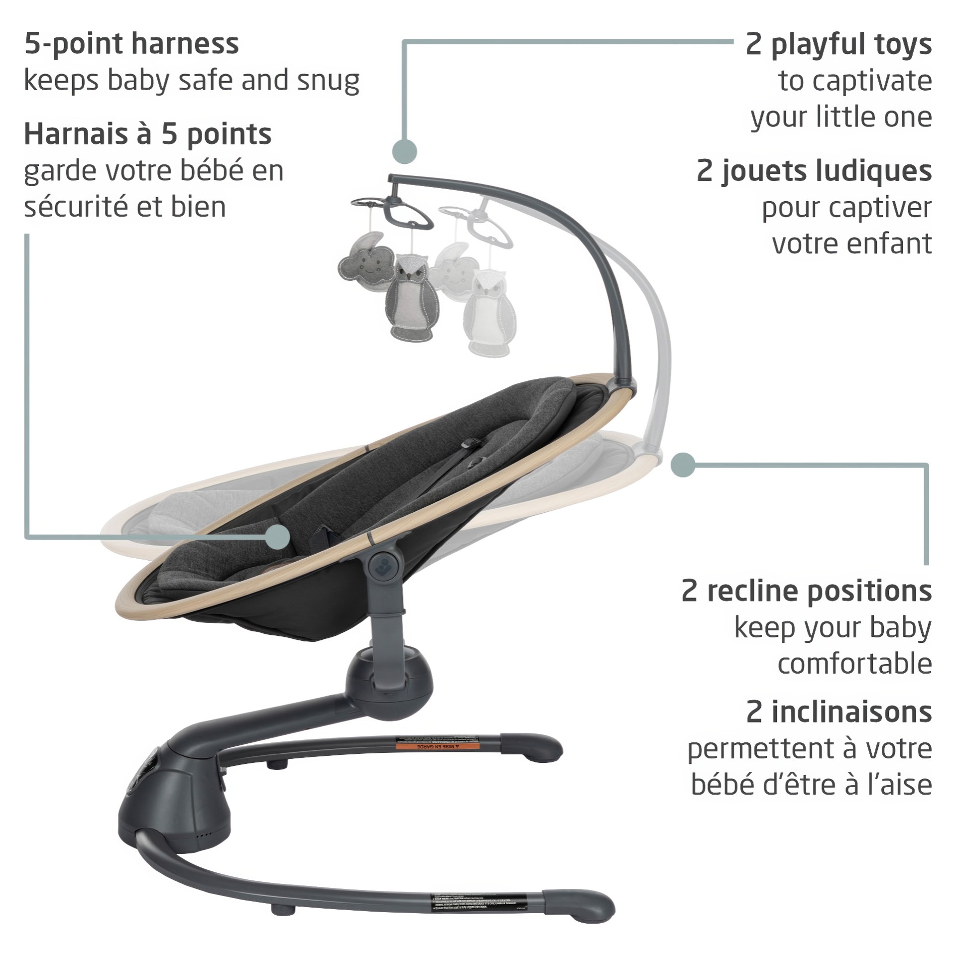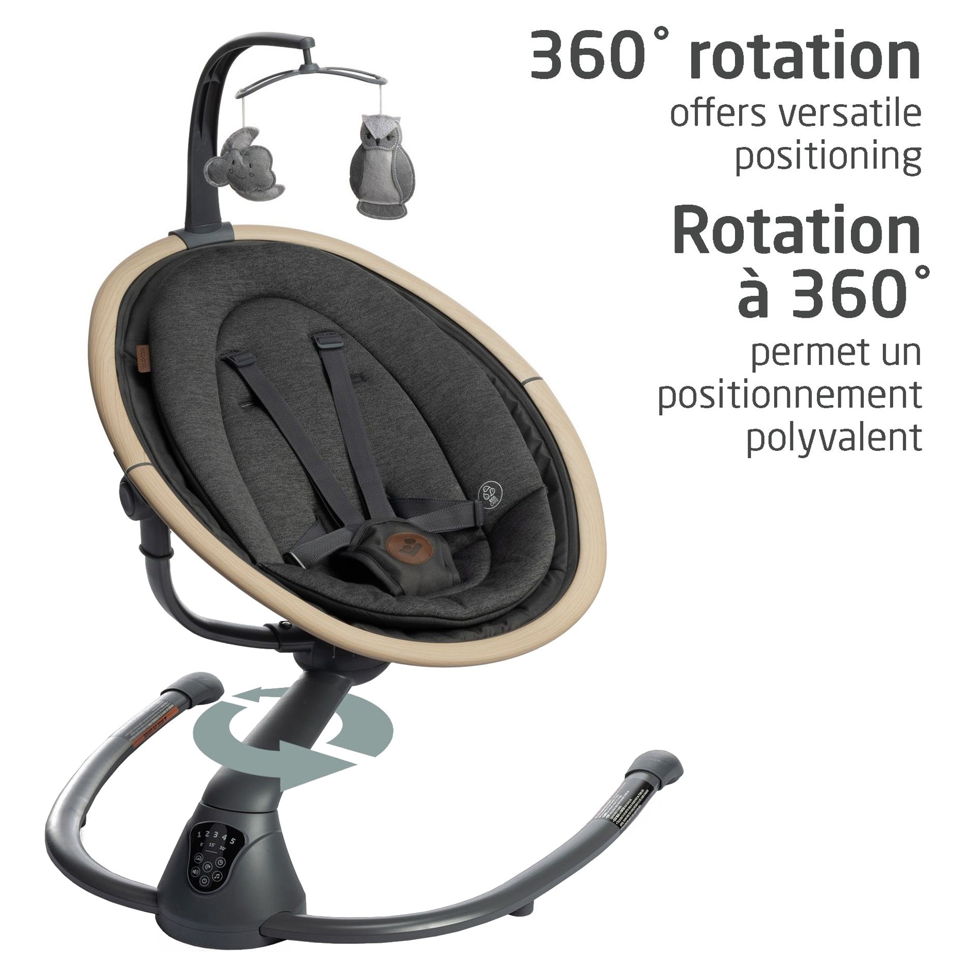 Avec deux inclinaisons et deux jouets mobiles attrayants, elle permet à votre bébé de se divertir et de rester au chaud.