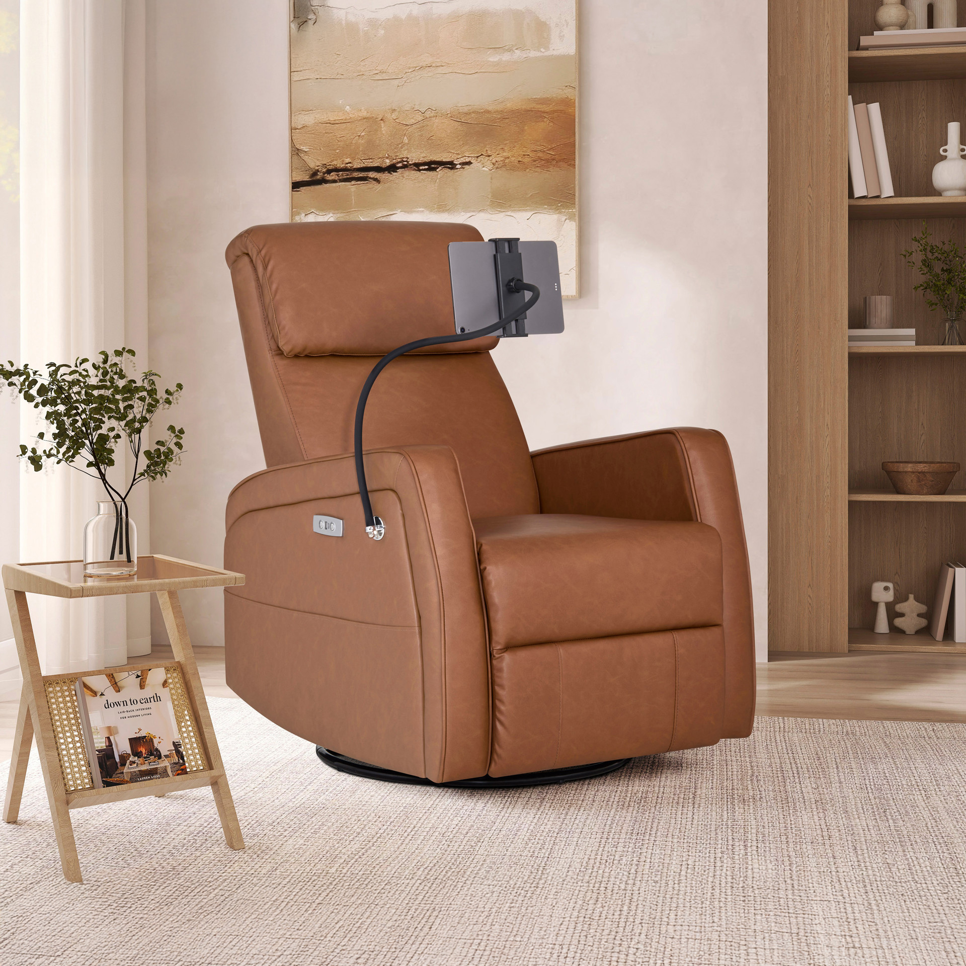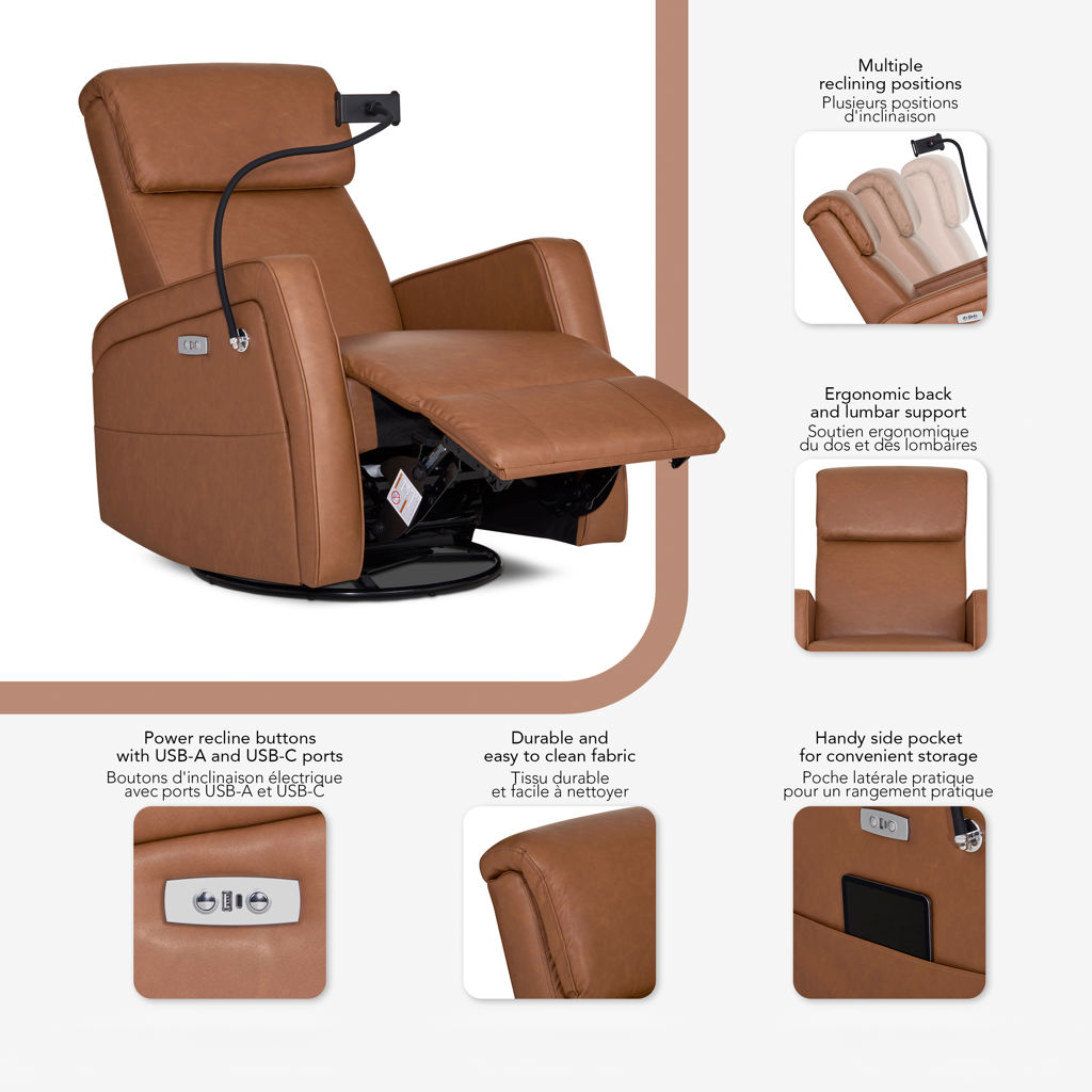 Fauteuil berçant inclinable motorisé Maverick avec support à appareil mobile intégré en similicuir