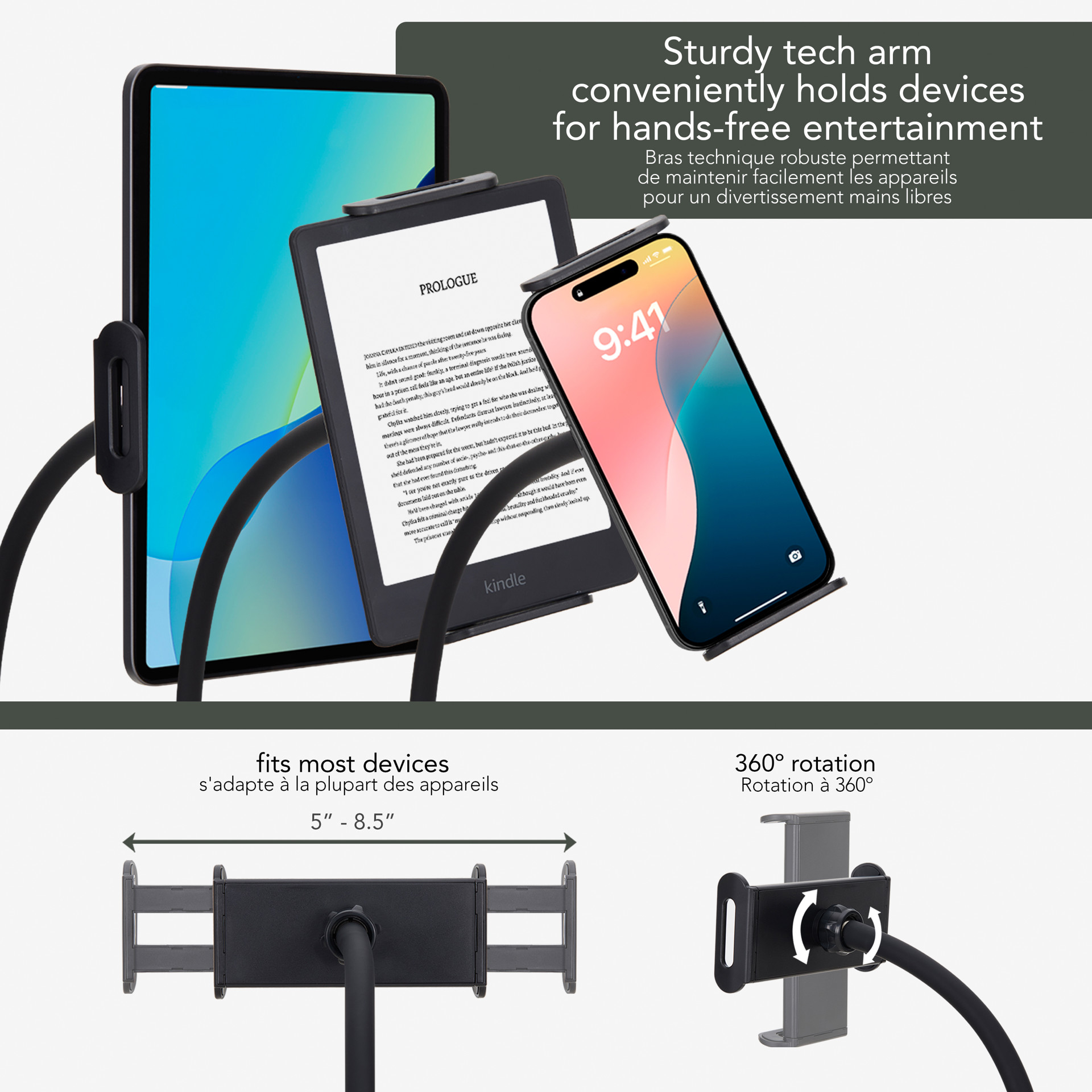 Avec une fonction d'inclinaison électrique, un pivotement à 275 degrés et un support d'appareil unique qui sert également de support de tablette, ce fauteuil coulissant répond à tous vos besoins. Il a une capacité de poids de 300 lb (136 kg).